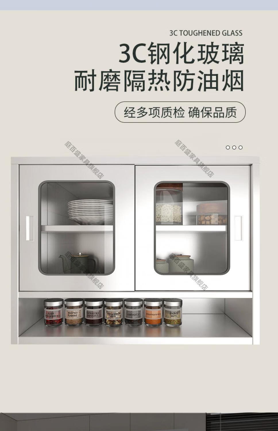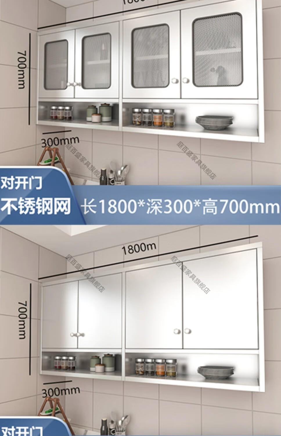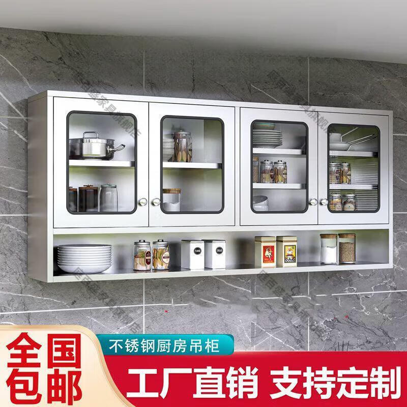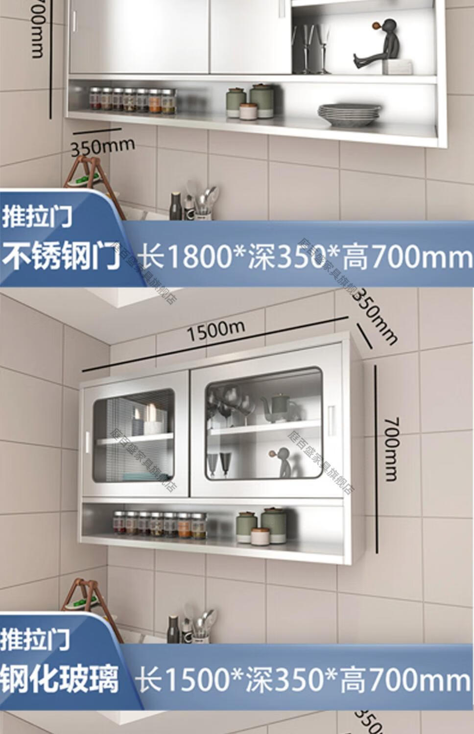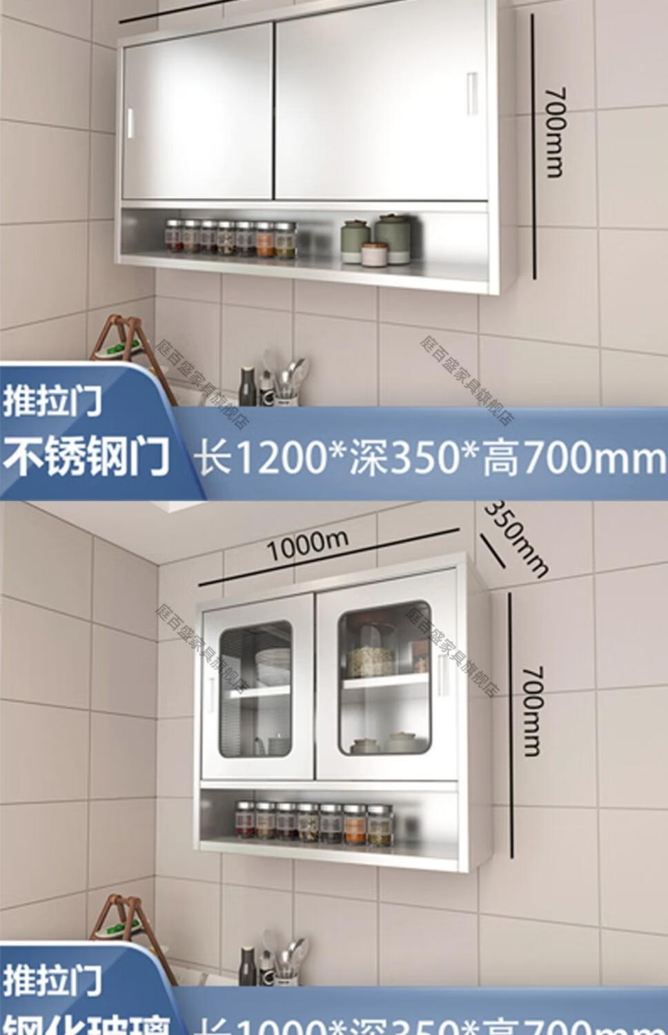Tingbaisheng stainless steel home kitchen wall cabinet cupboard bathroom bathroom wall cabinet balcony wall storage cabinet cabinet wall cabinet 304 stainless steel thickened glass door wall cabinet 80 cm wide