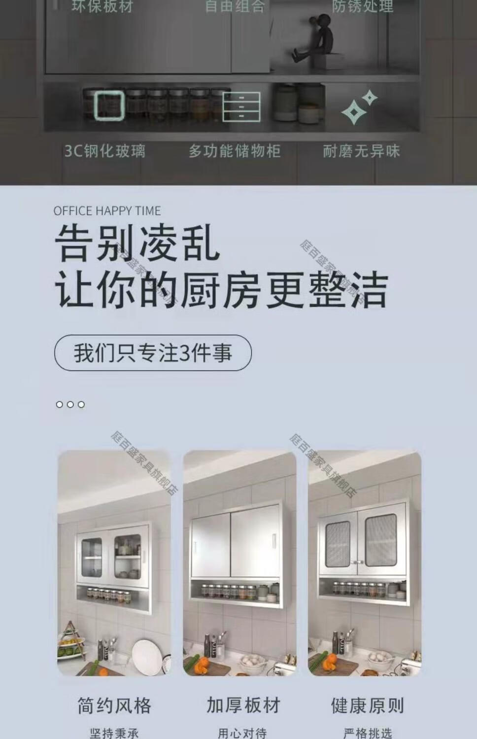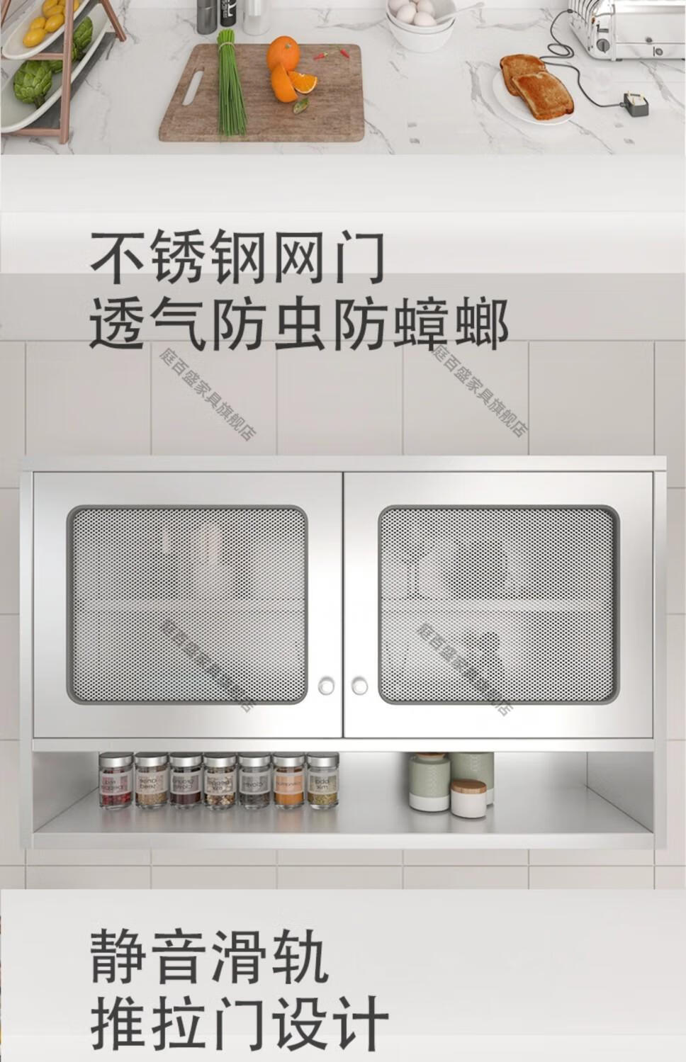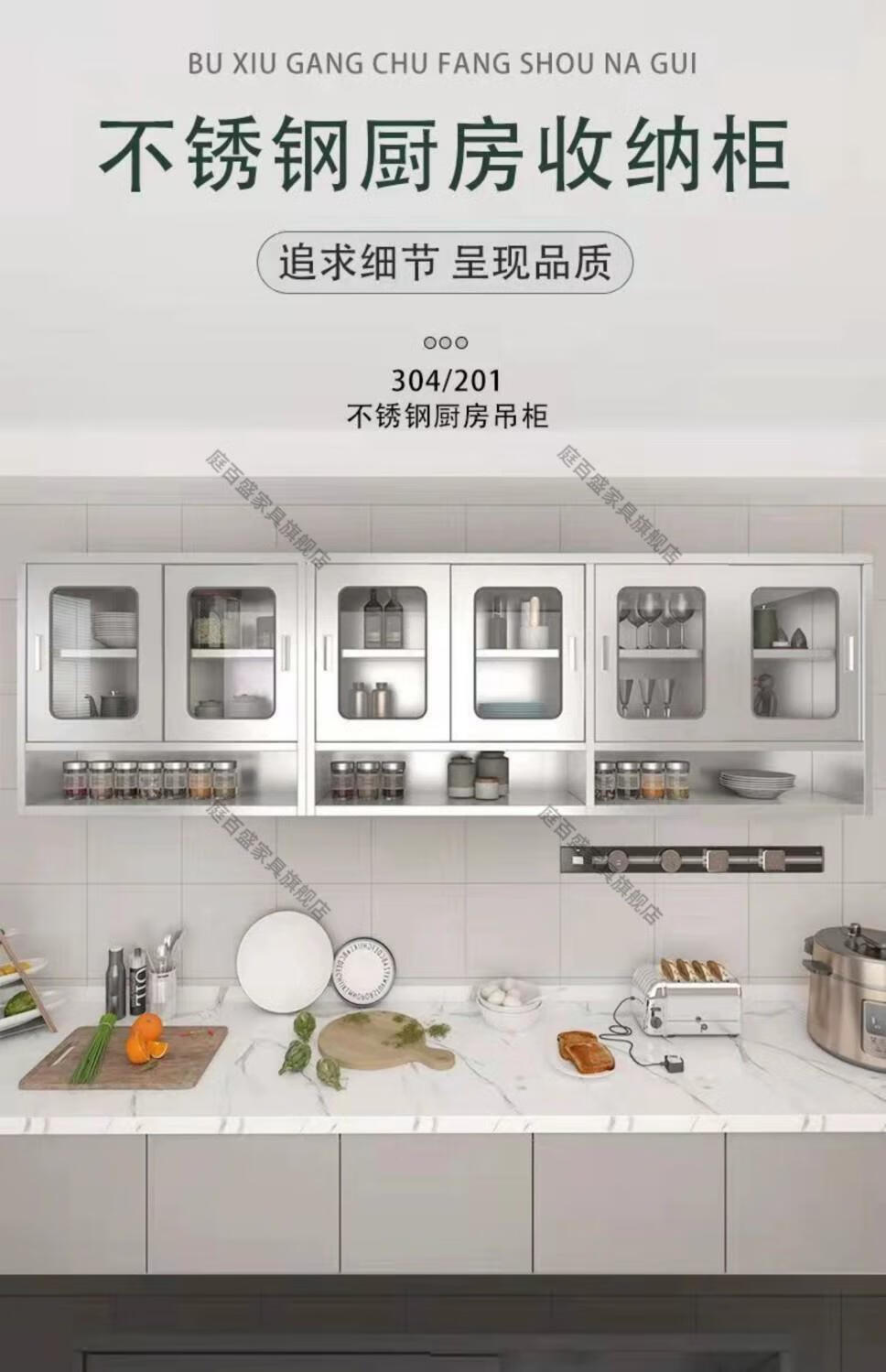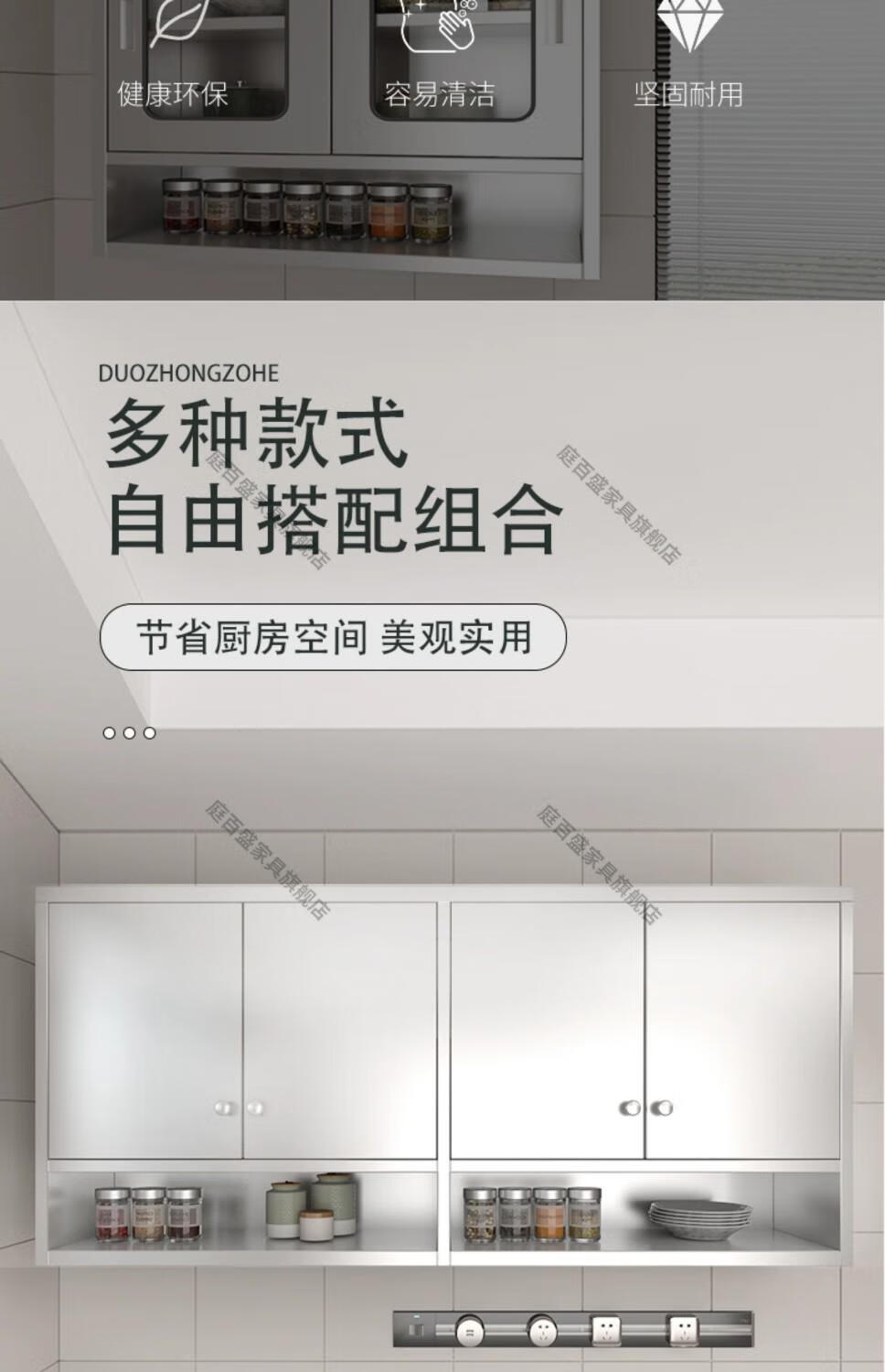 Tingbaisheng stainless steel home kitchen wall cabinet cupboard bathroom bathroom wall cabinet balcony wall storage cabinet cabinet wall cabinet 304 stainless steel thickened glass door wall cabinet 80 cm wide