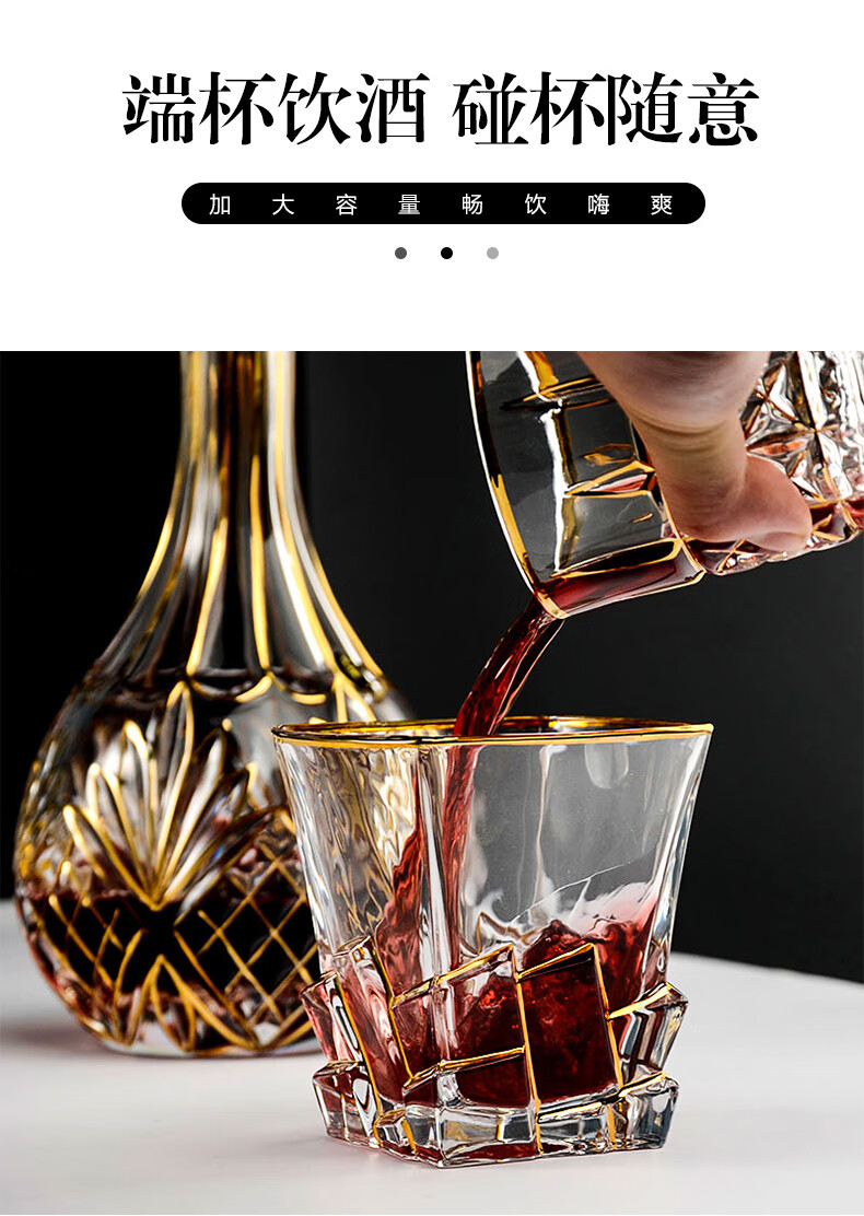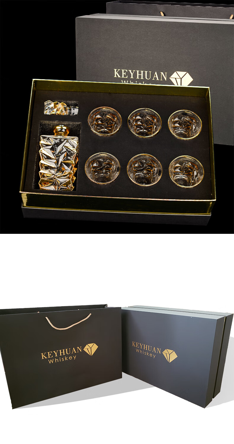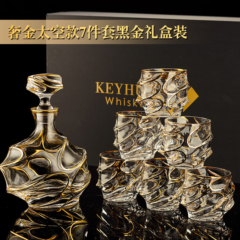 FANKAQI gold-painted whiskey glass set gift box, beer glass, gold-painted Nick style gift box set, 7-piece set