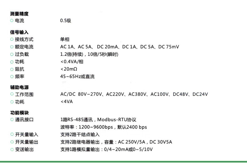 Yue Changsheng ammeter transformer digital display AC 5A RS485 upper and lower limit alarm output current display meter 120*120/111*111*80AC5AA