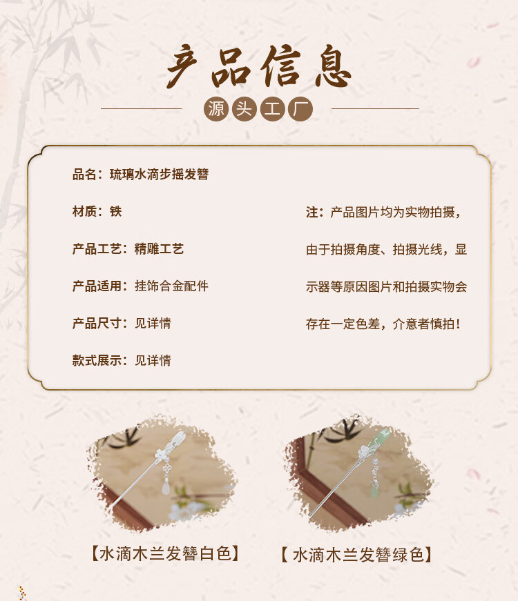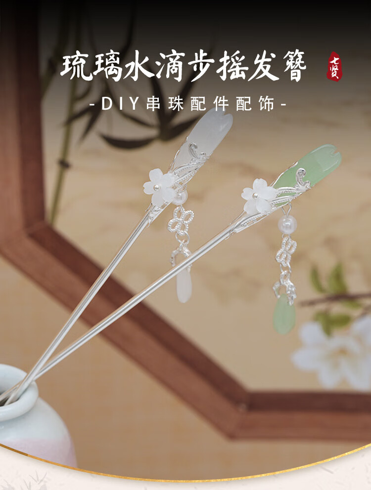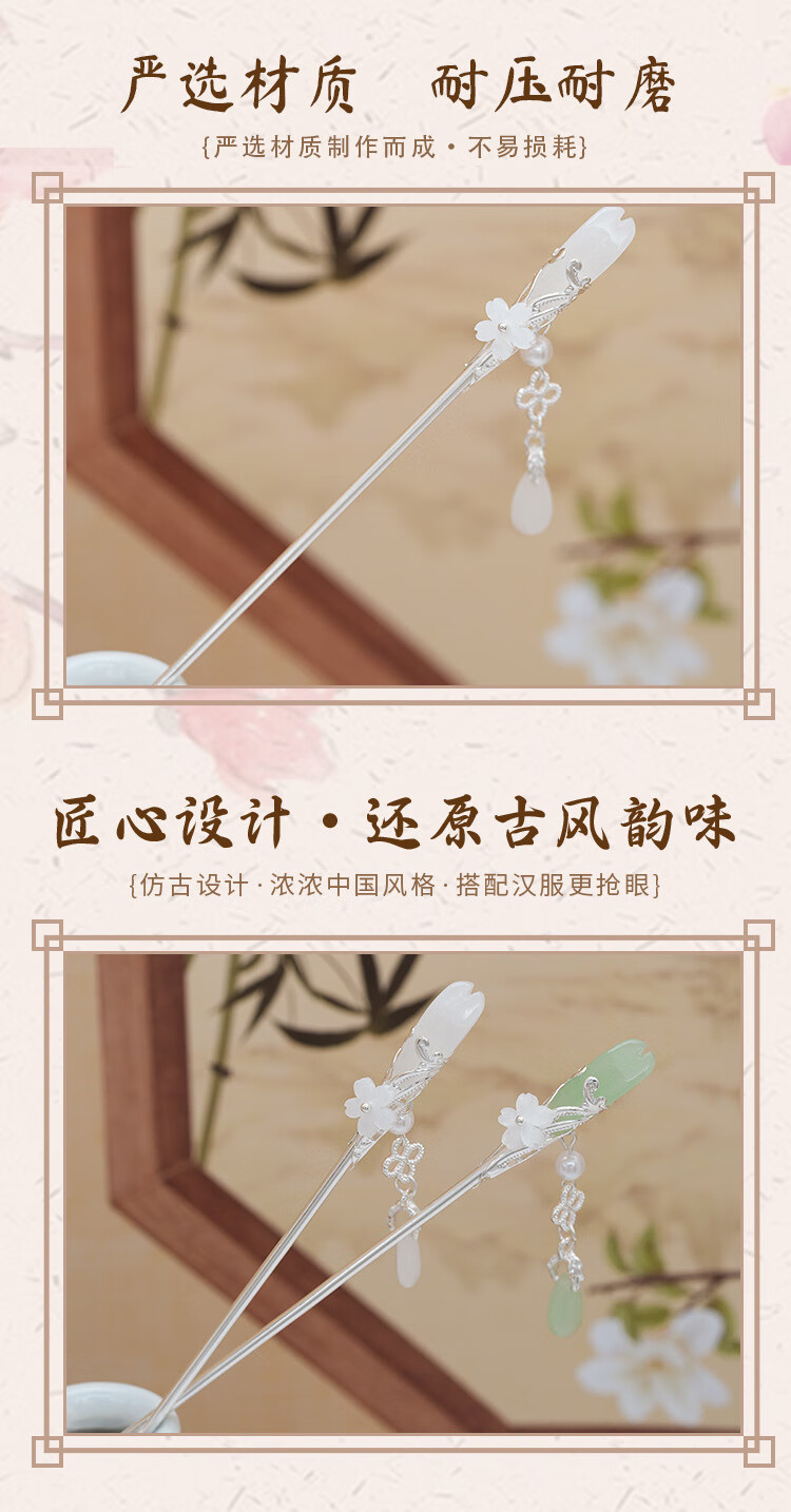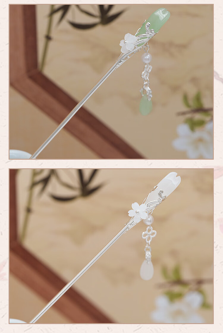 Retro ethnic style hairpin glazed water drop silver step shake tassel ancient style daily simple new Chinese Hanfu hairpin water drop magnolia hairpin white
