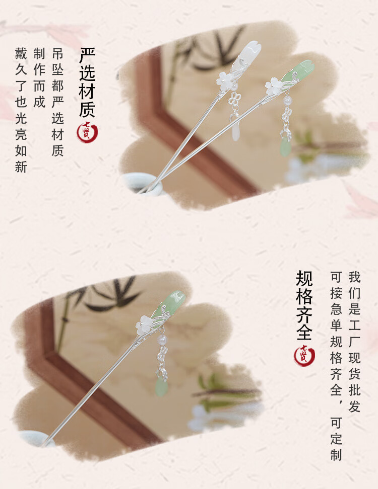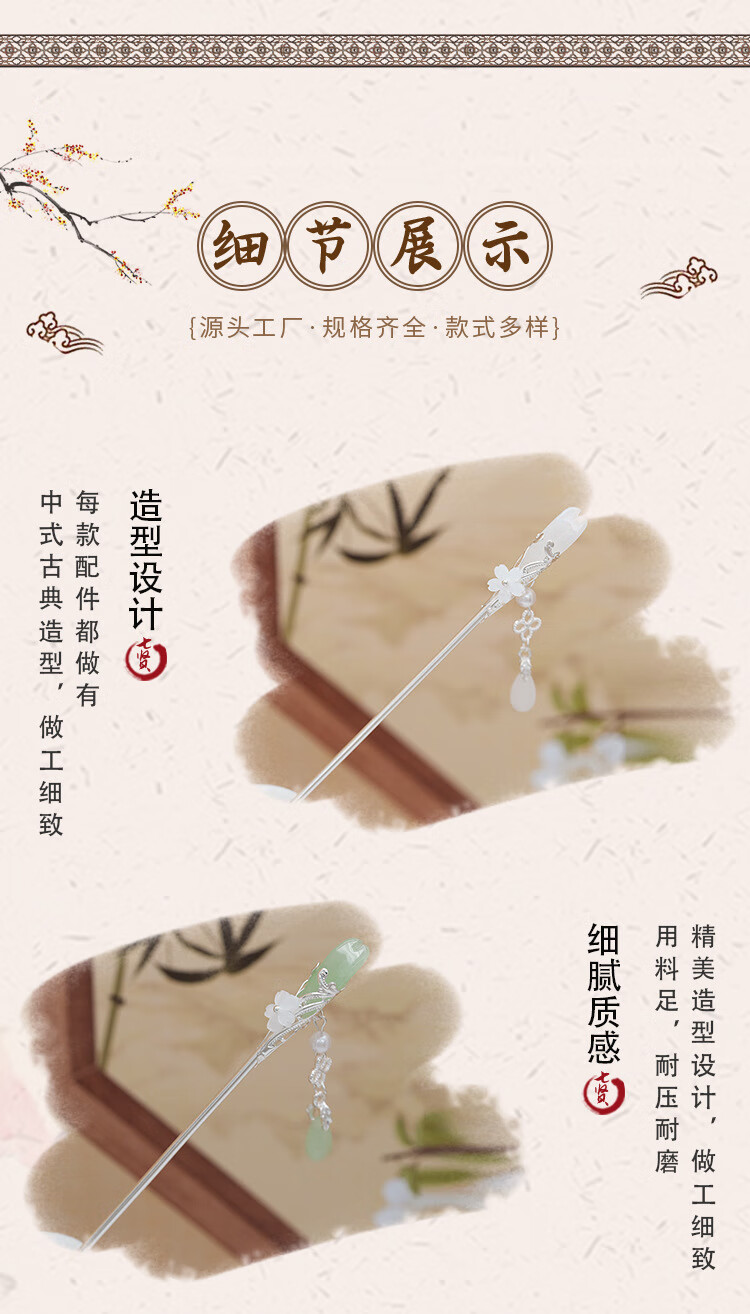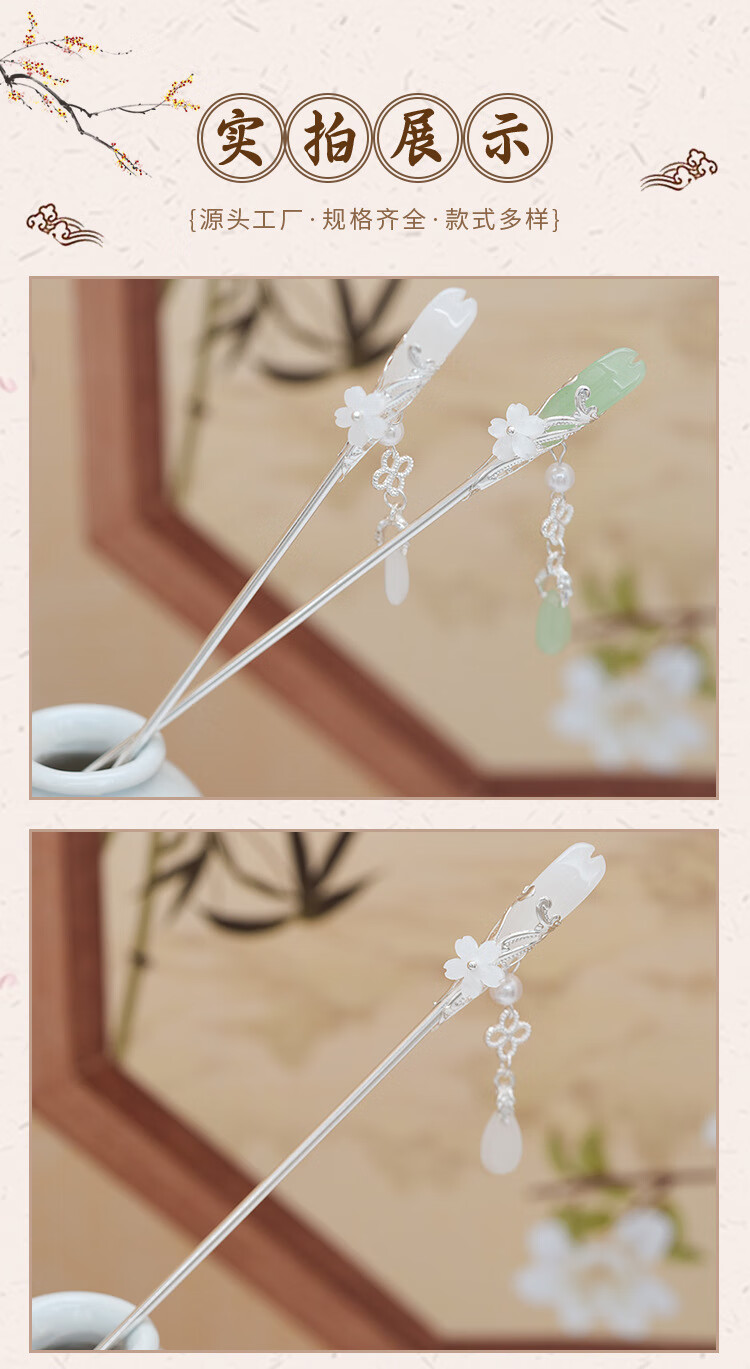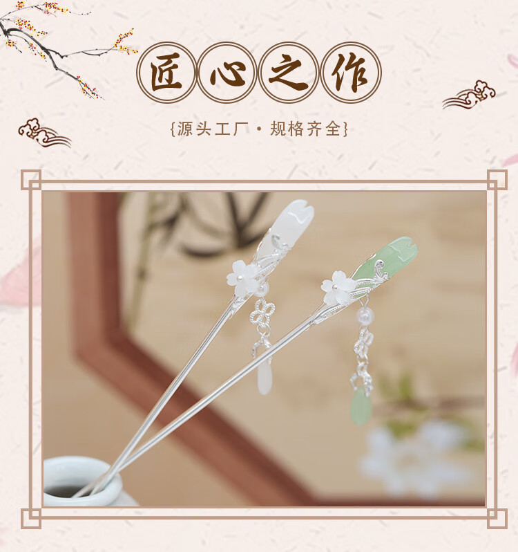Retro ethnic style hairpin glazed water drop silver step shake tassel ancient style daily simple new Chinese Hanfu hairpin water drop magnolia hairpin white