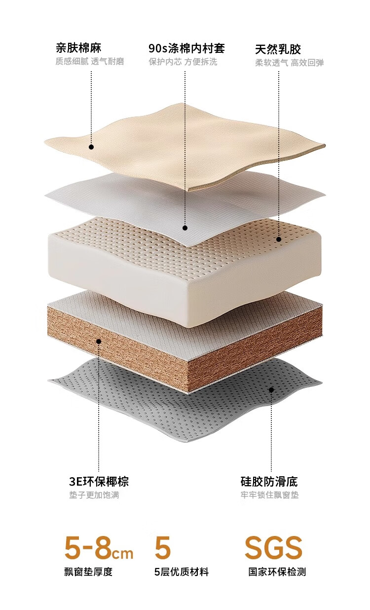 Whimsical Bay Window Mat Window Sill Mat Universal for All Seasons 2025 New Custom Maternal and Infant Grade Tatami Mat Coconut Brown Latex Sleepable VIP Exclusive (Randomly Send Measuring Ruler)