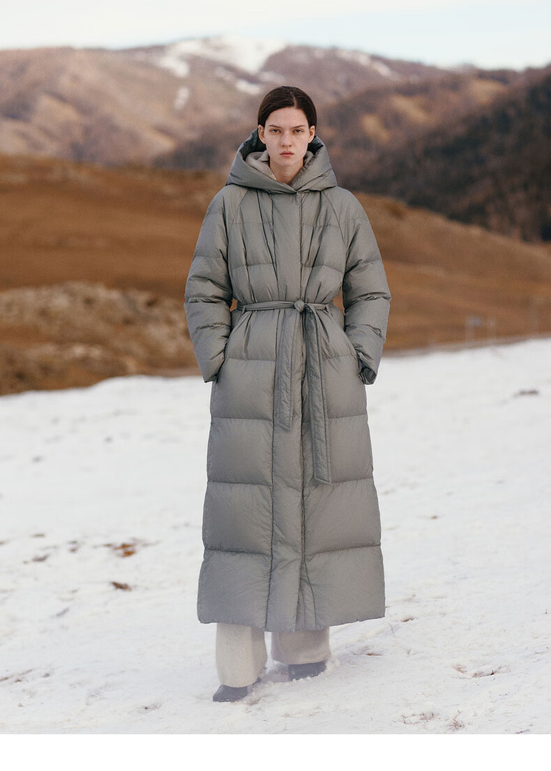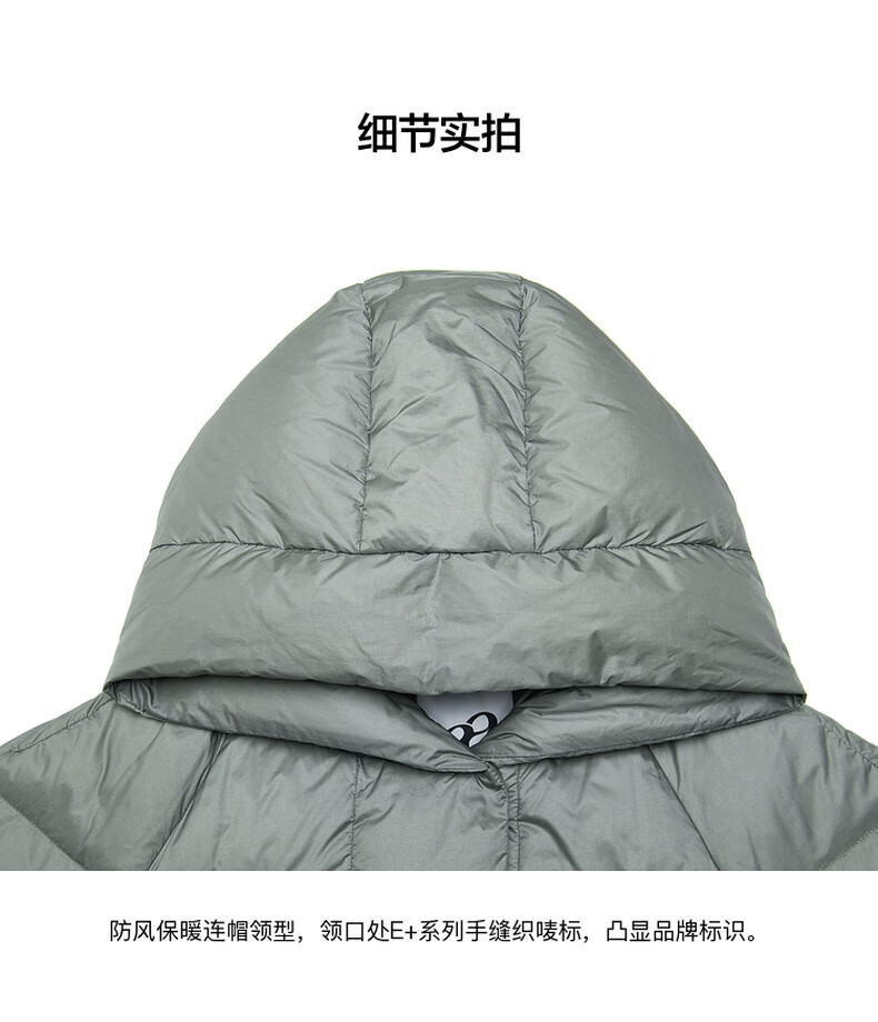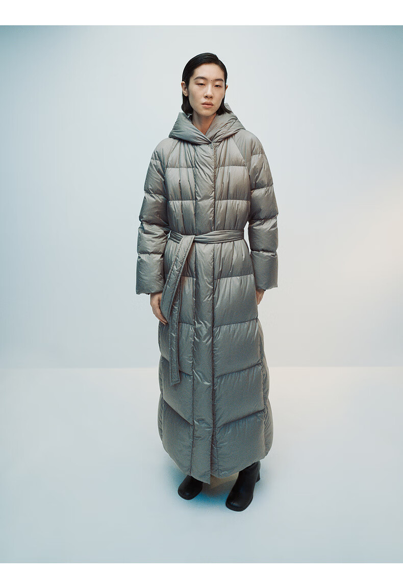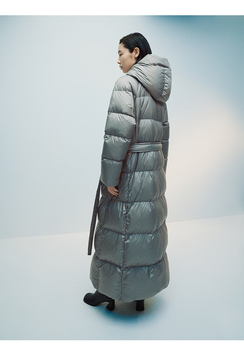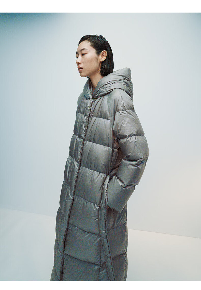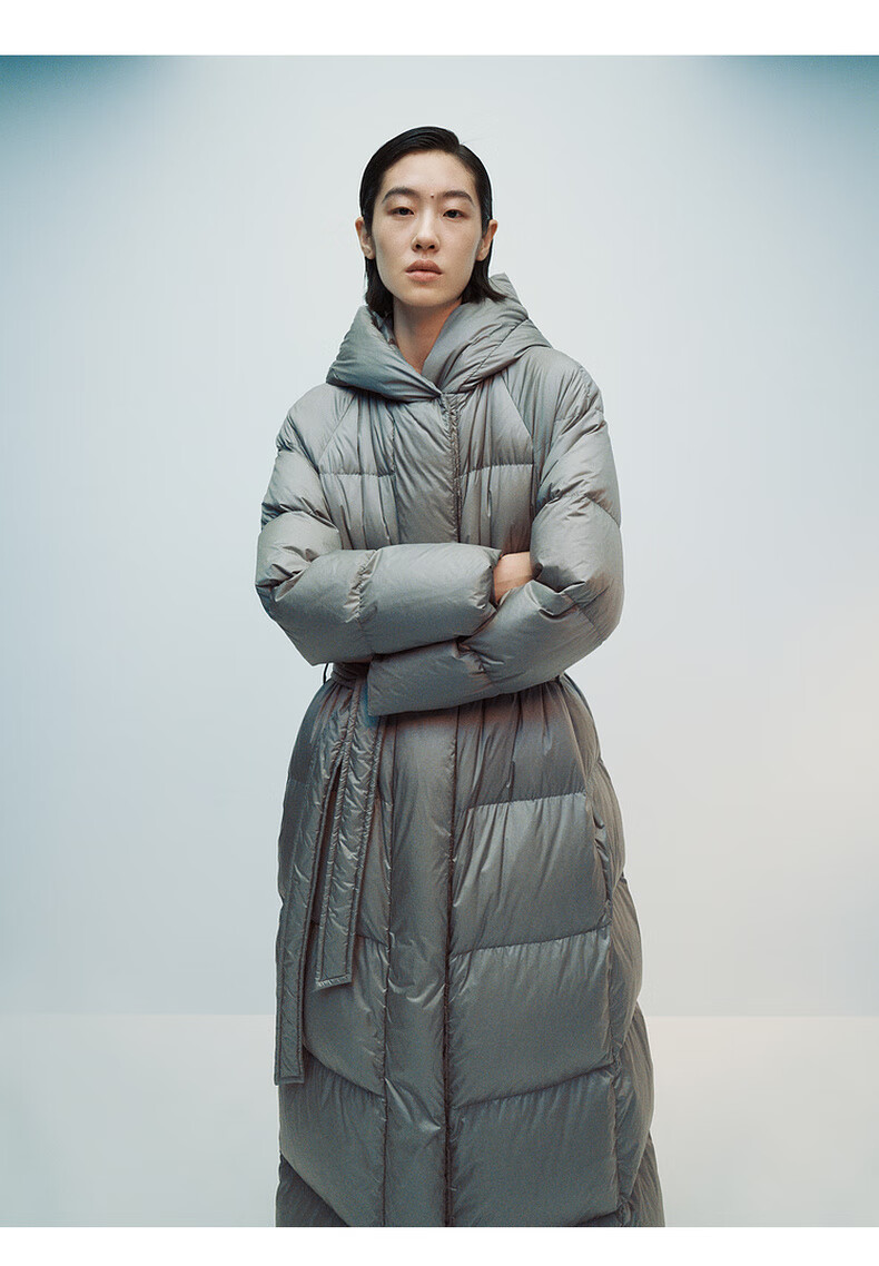editionE+轻生活系列冬新款升温蓄热轻暖连帽瘦长收腰羽绒服 雾青灰色 M