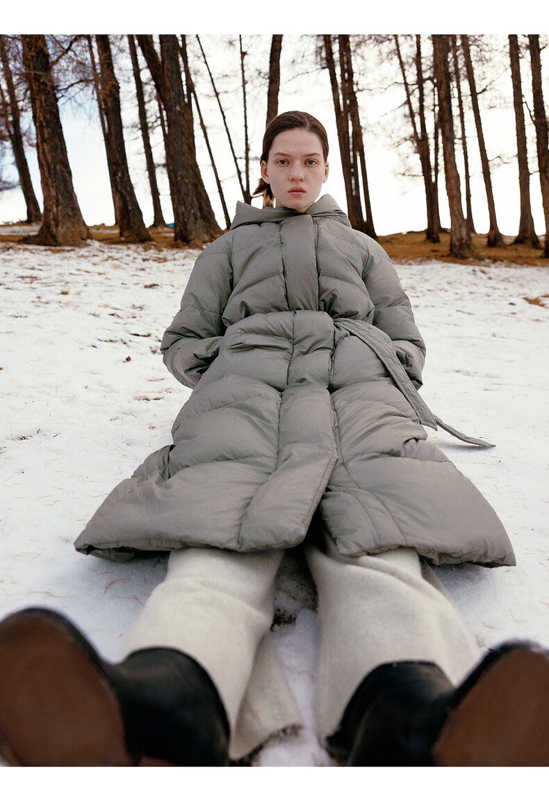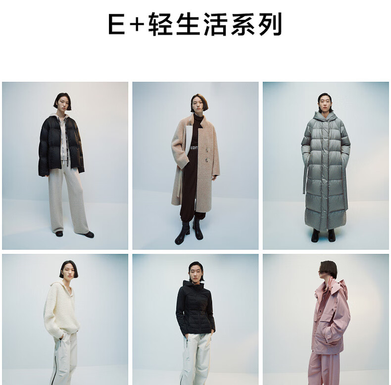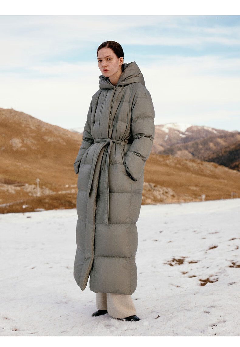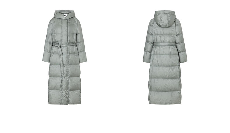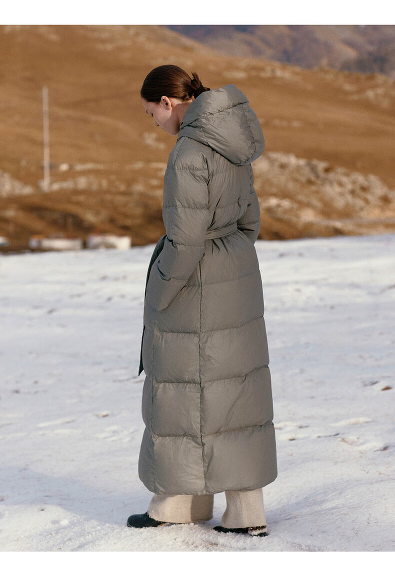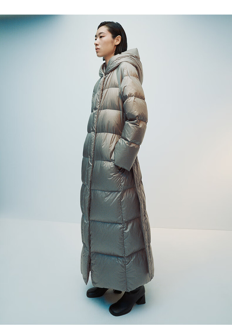 editionE+轻生活系列冬新款升温蓄热轻暖连帽瘦长收腰羽绒服 雾青灰色 M