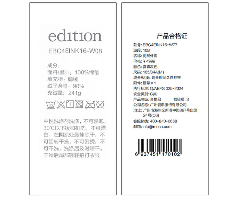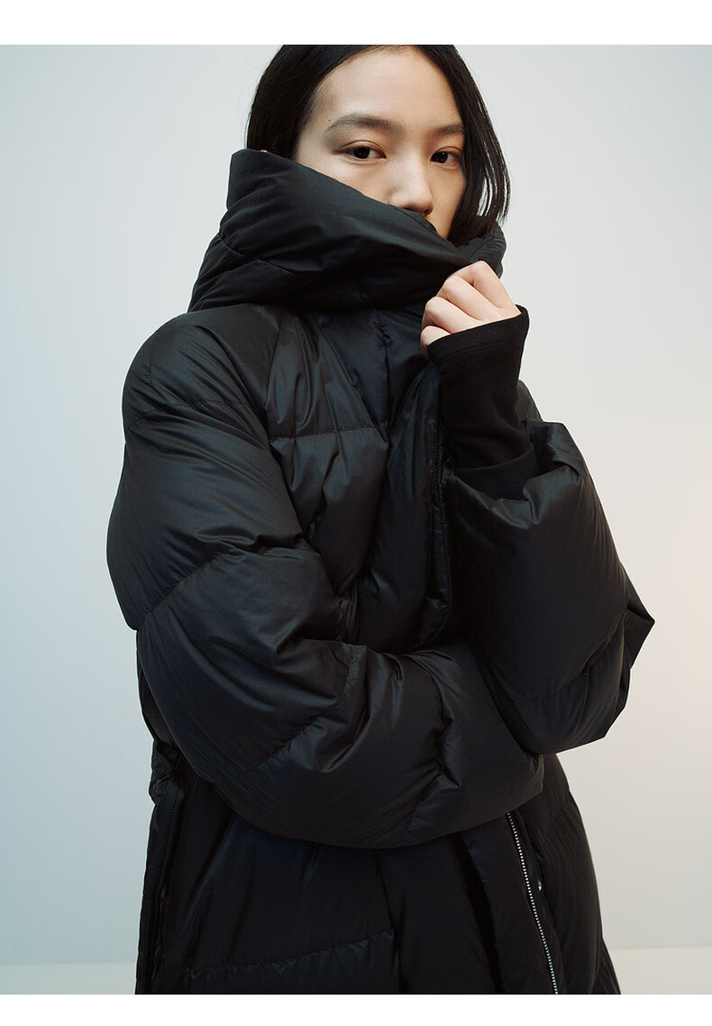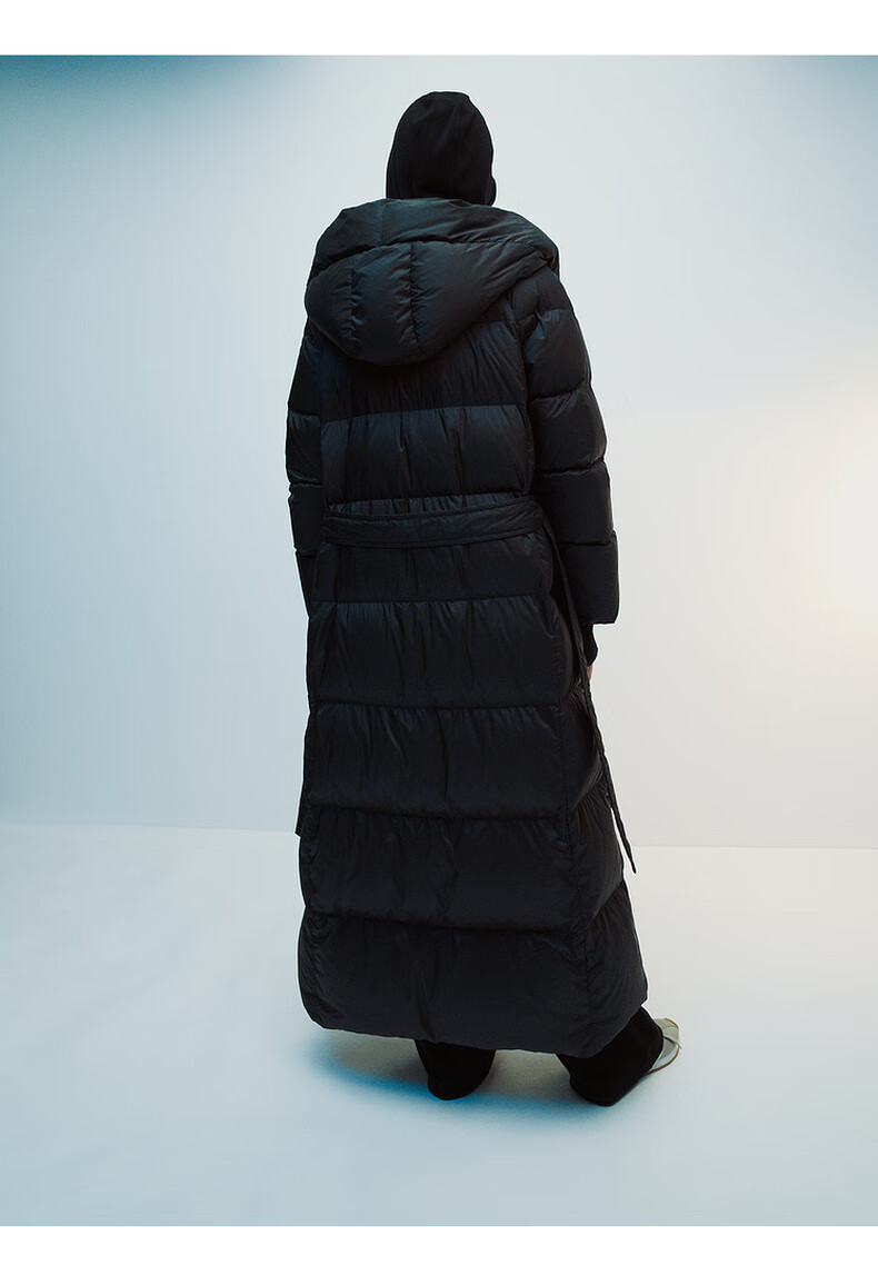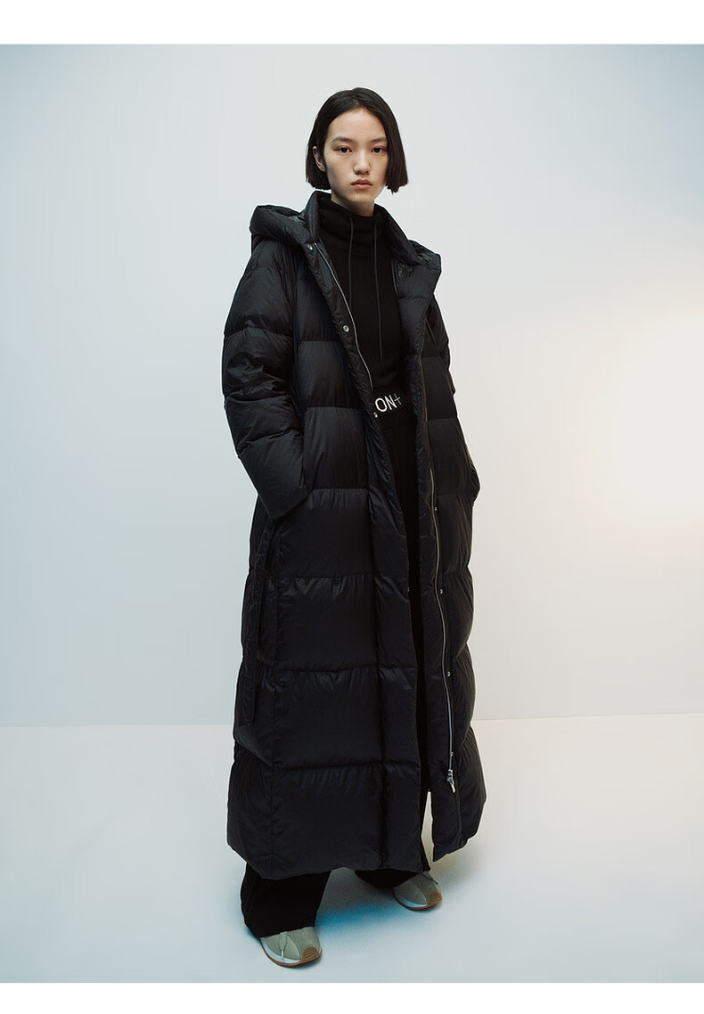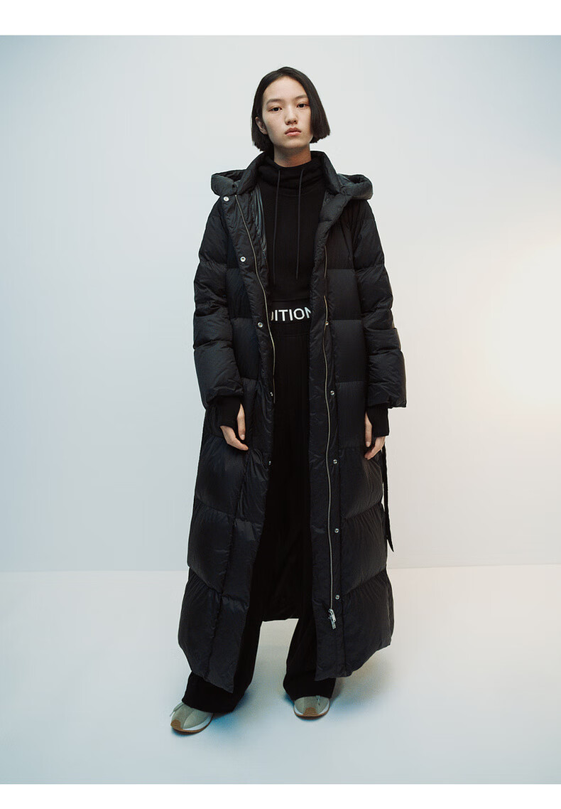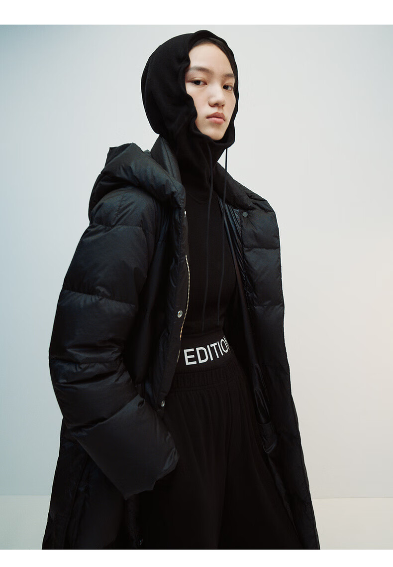 editionE+轻生活系列冬新款升温蓄热轻暖连帽瘦长收腰羽绒服 雾青灰色 M