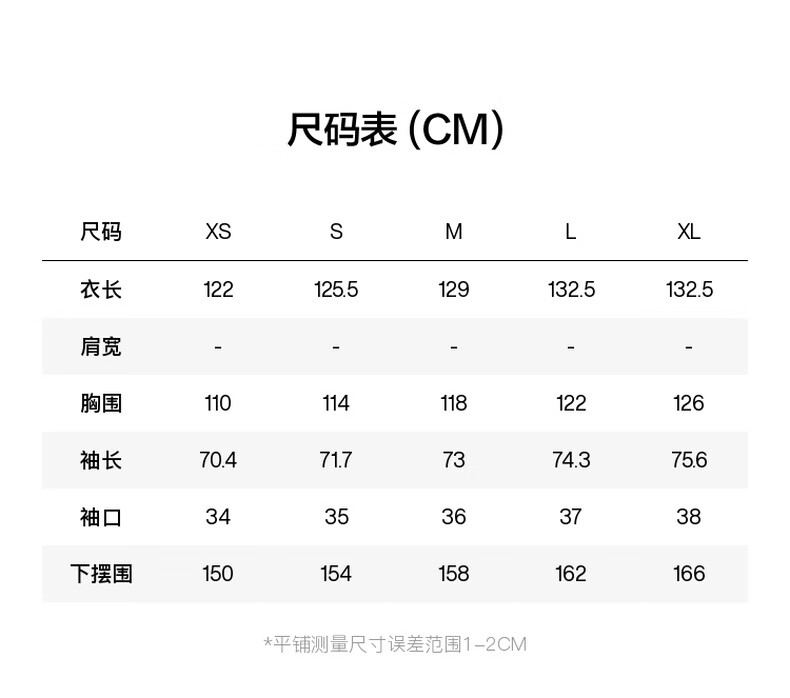 China (cm) 165 / 88-90 170 / 96-98 175 / 108-110 180 / 118-122 185 / 126-130