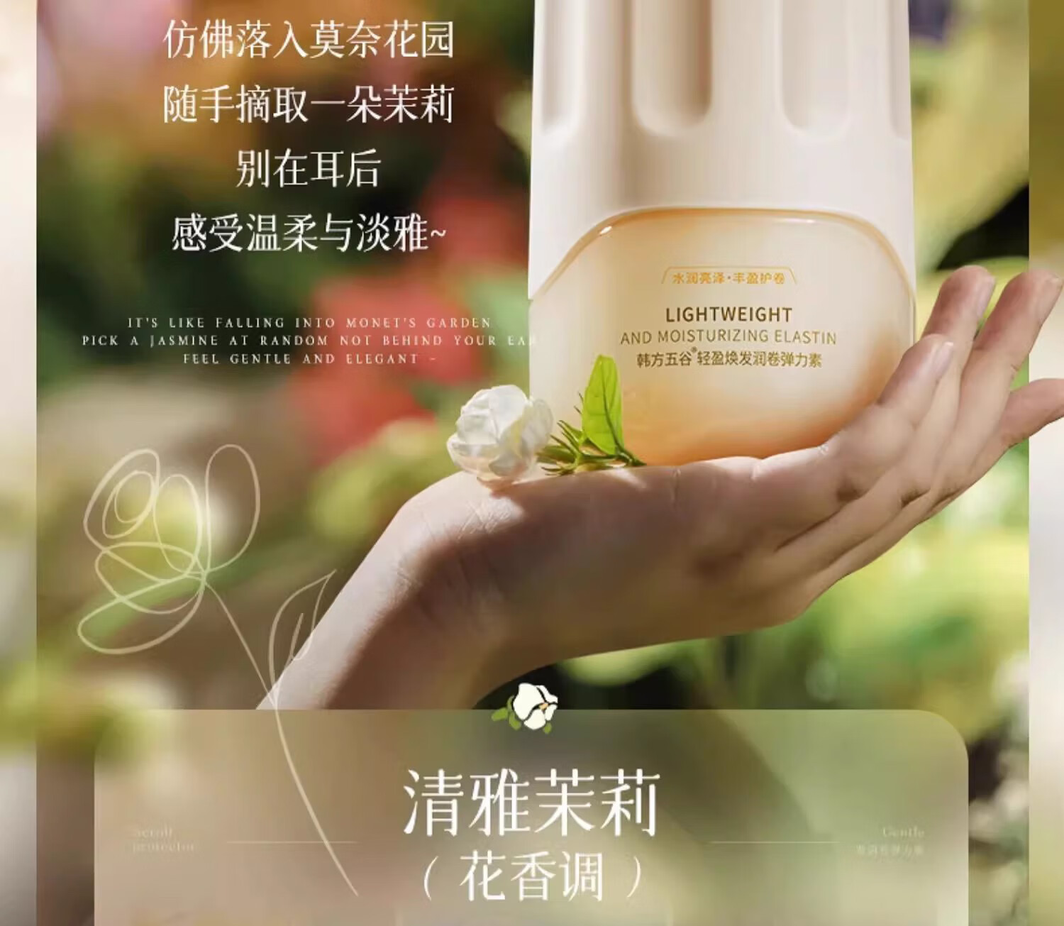 Korean herbal grains, light, radiant, moisturizing and curling elastin for women to repair and fluffy, moisturizing and anti-frizz after perming. Jasmine lily of the valley fragranced elastin 300g.