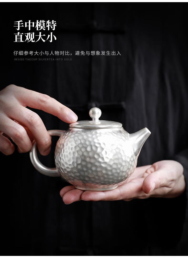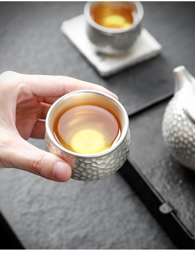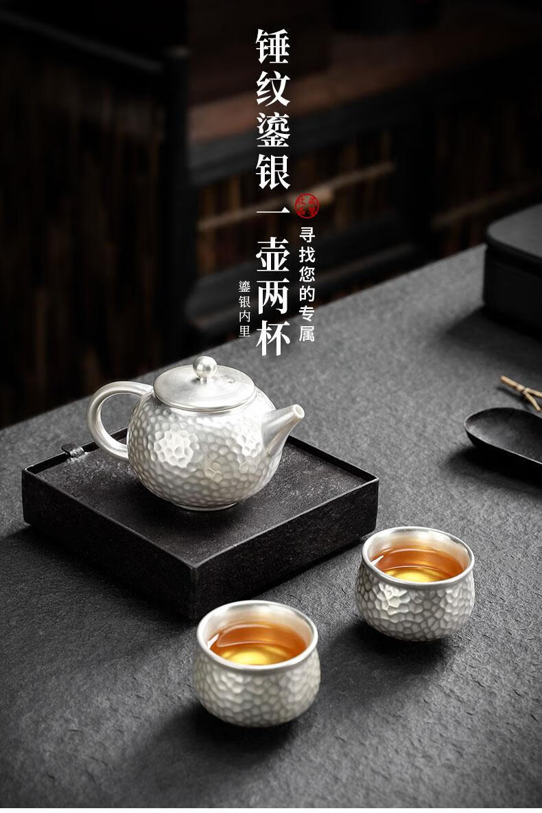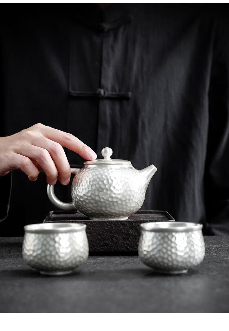 Silver pot, gilt silver tea set, 999 silver set, light luxury hammer pattern, one pot and two cups, one pot and two cups, 1 piece