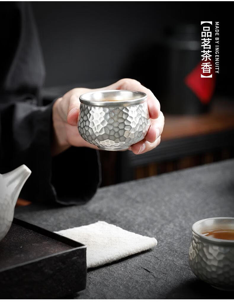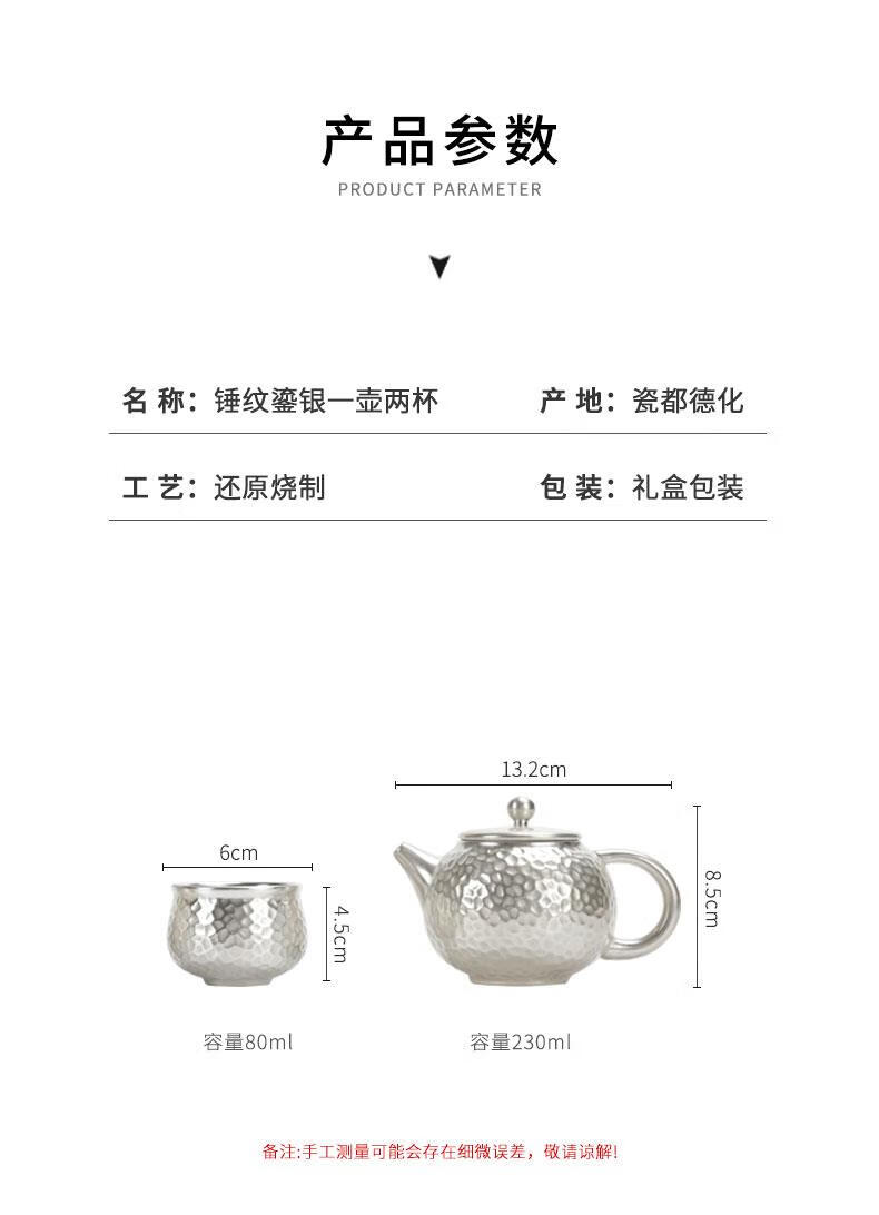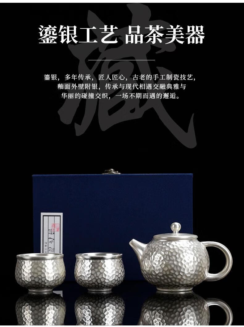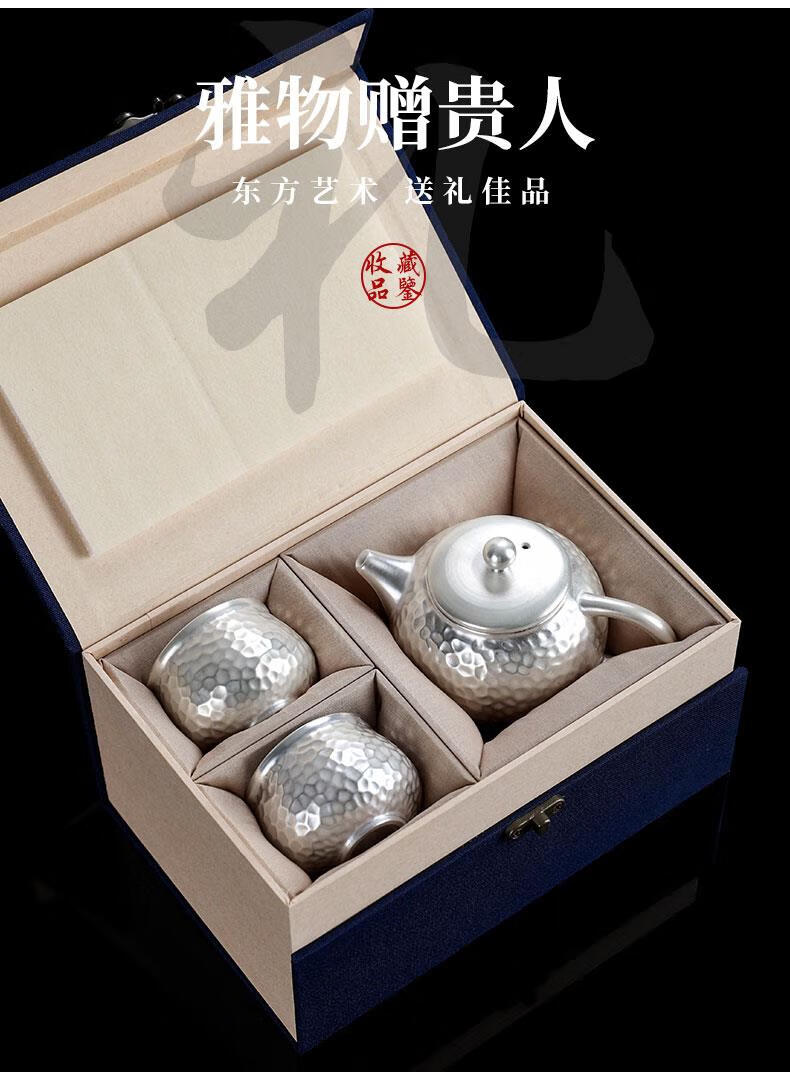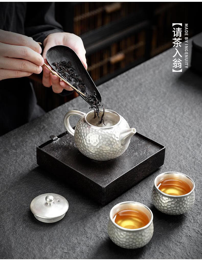 Silver pot, gilt silver tea set, 999 silver set, light luxury hammer pattern, one pot and two cups, one pot and two cups, 1 piece