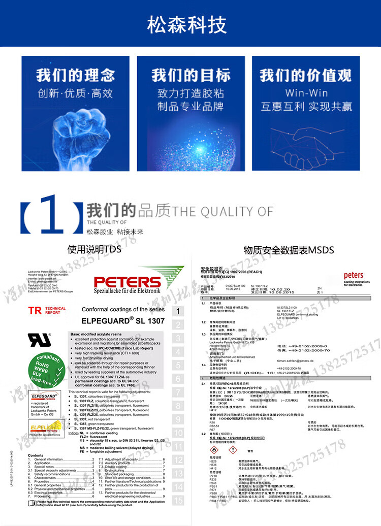 Germany Peters SL 1307 FLZ coating insulating coating conformal paint UL flame retardant certification 5KG 1KG packaging