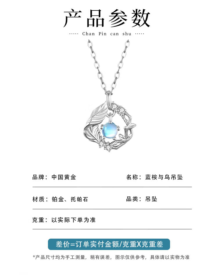 China Gold (CHINA GOLD) Blue Eucalyptus and Bird Pendant Women's Light Luxury Niche Pt950 Platinum Necklace Father's Day Birthday Gift for Lover Platinum Pendant About 1.96g Free S925 Silver Chain