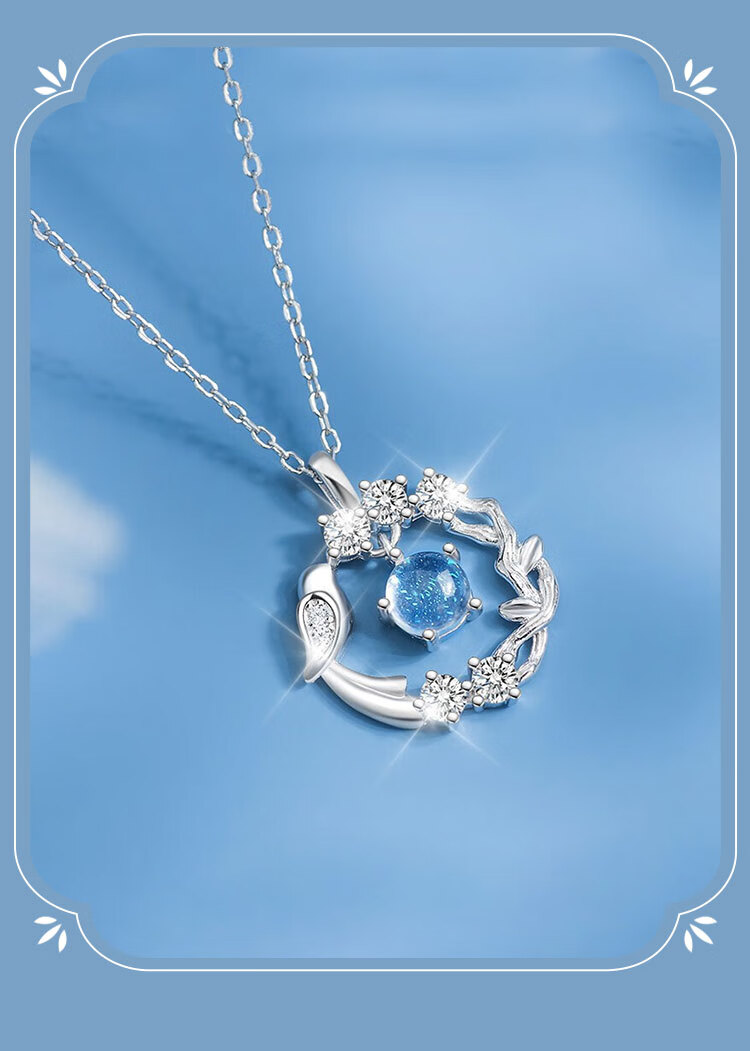 China Gold (CHINA GOLD) pt950 platinum necklace for women platinum blue eucalyptus and bird pendant jewelry Father's Day birthday gift for girlfriend and lover platinum pendant about 2.14g free silver chain