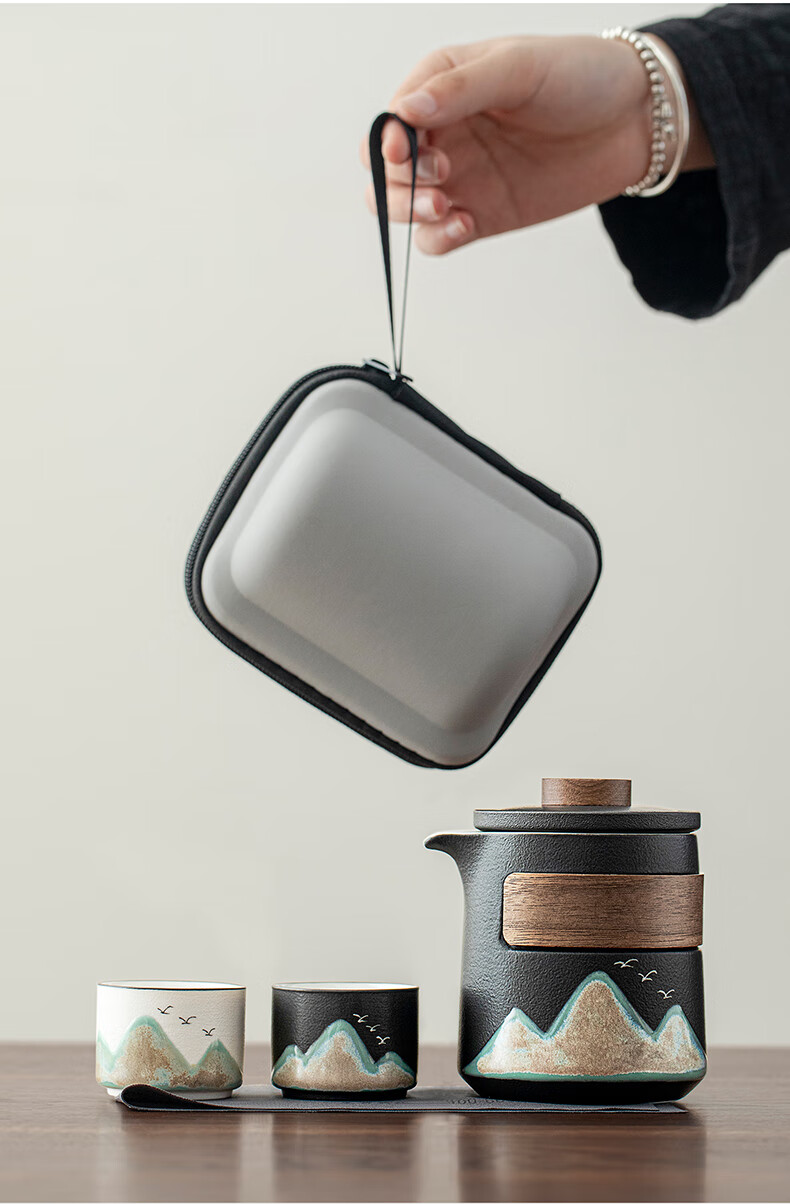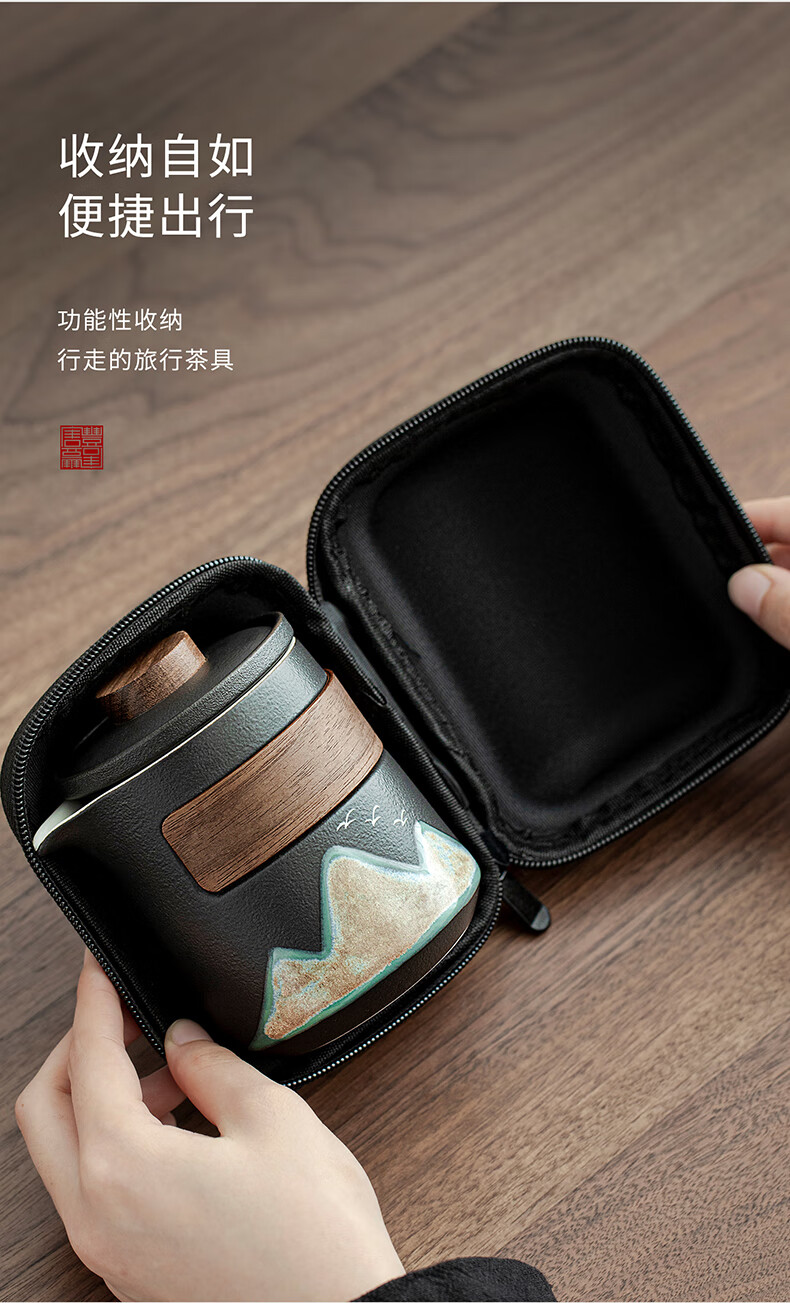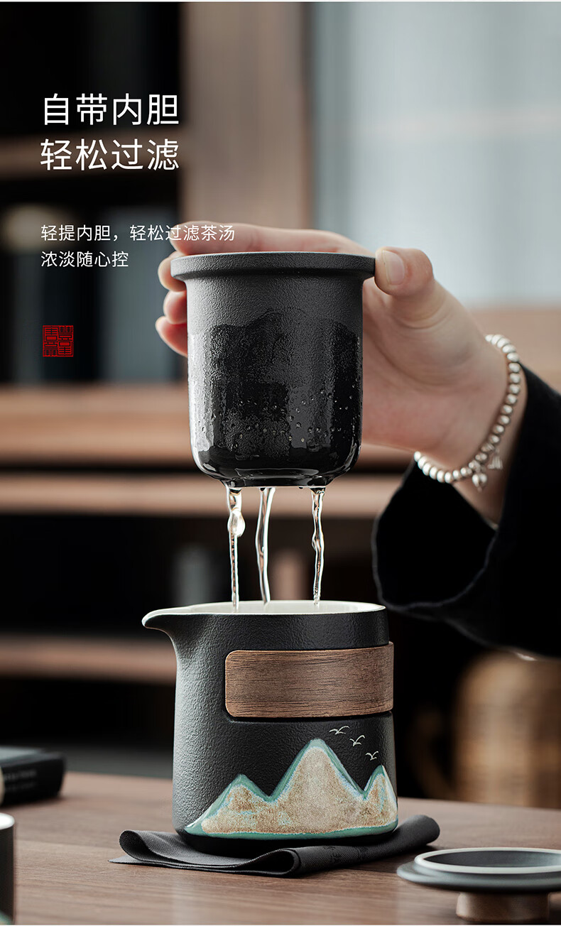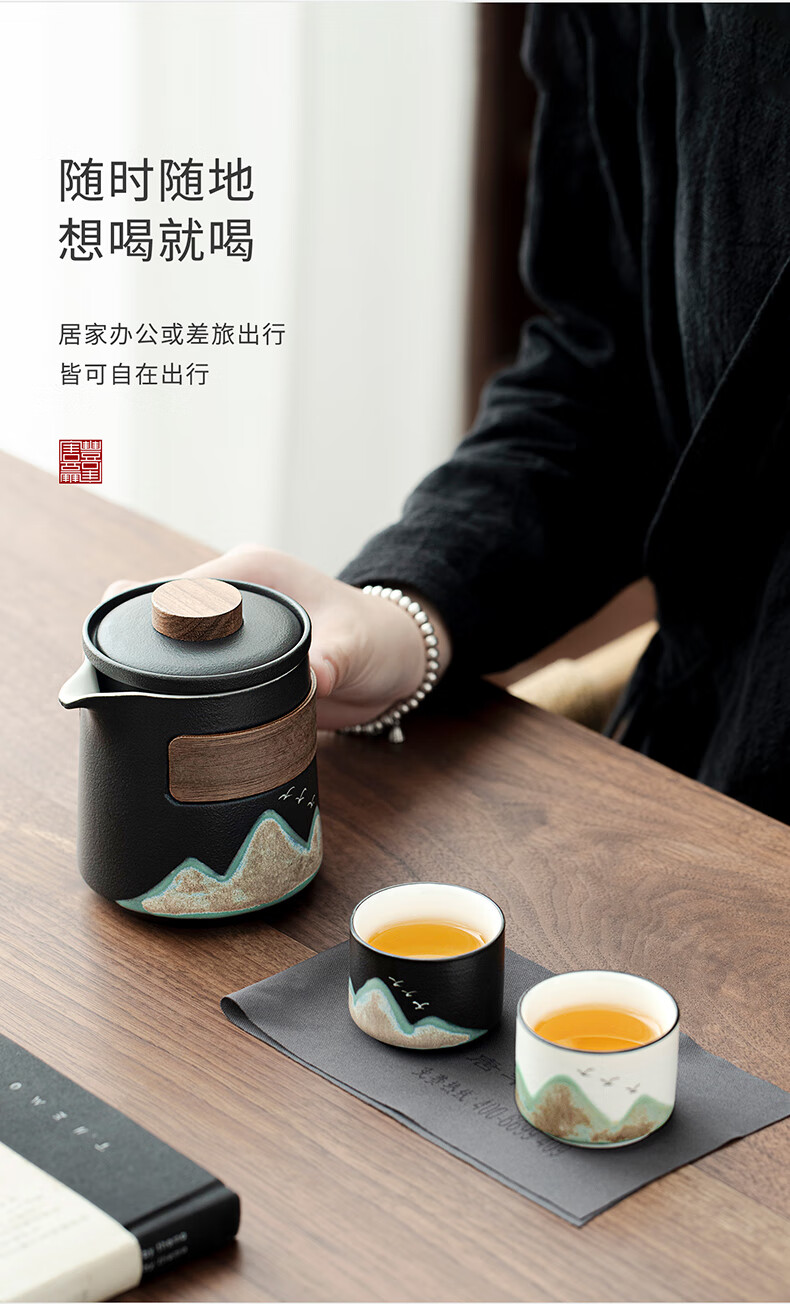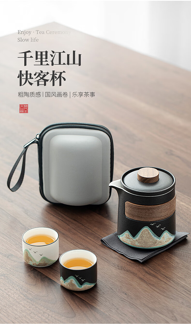 Tangfeng travel tea set, one pot and two cups, outdoor travel portable quick cup, birthday gift for elders, business souvenir, Yahei Qianli Jiangshan quick cup (with filter)