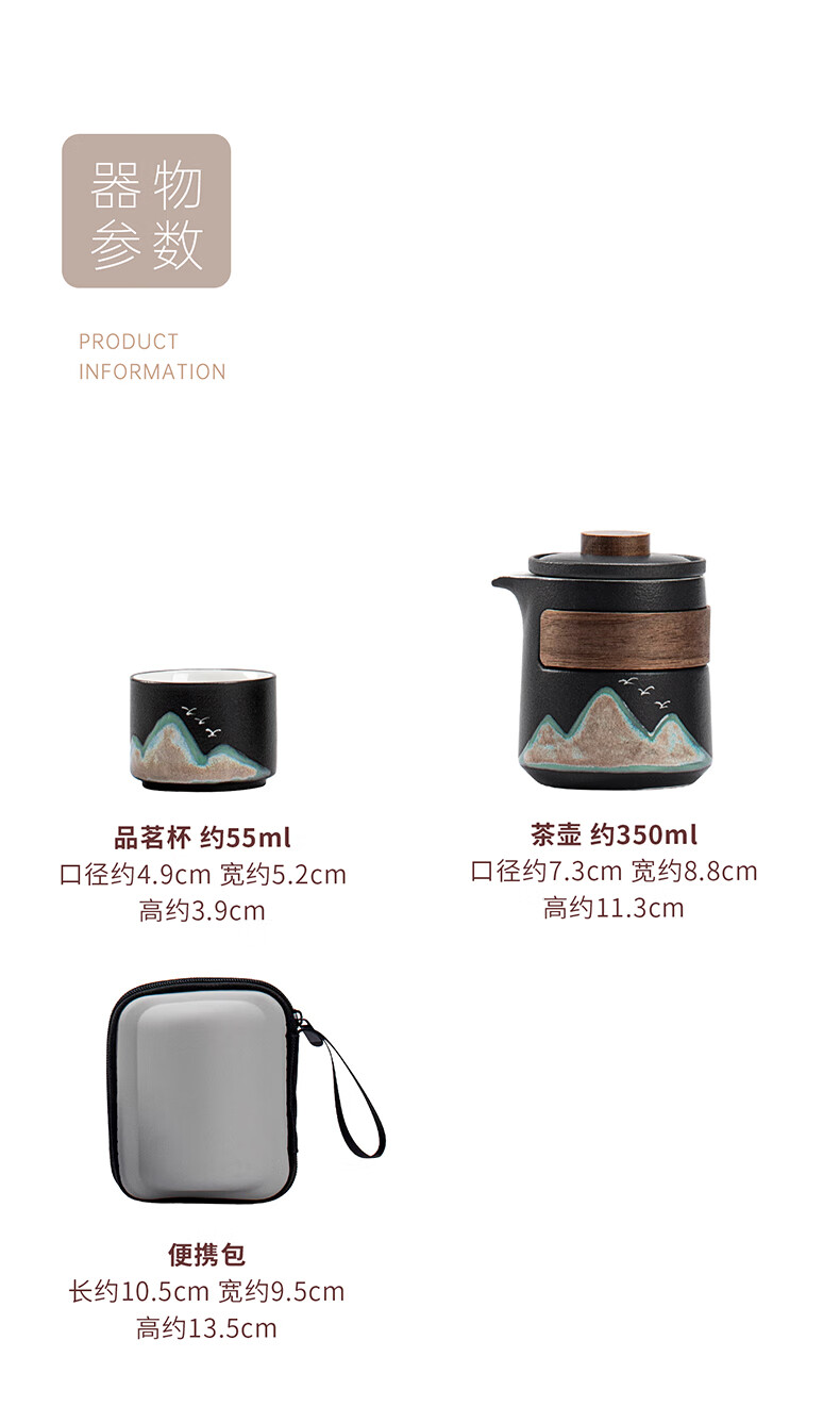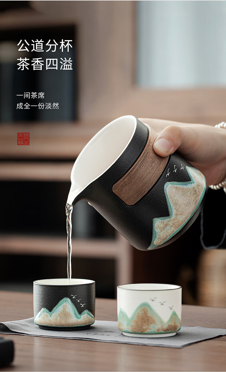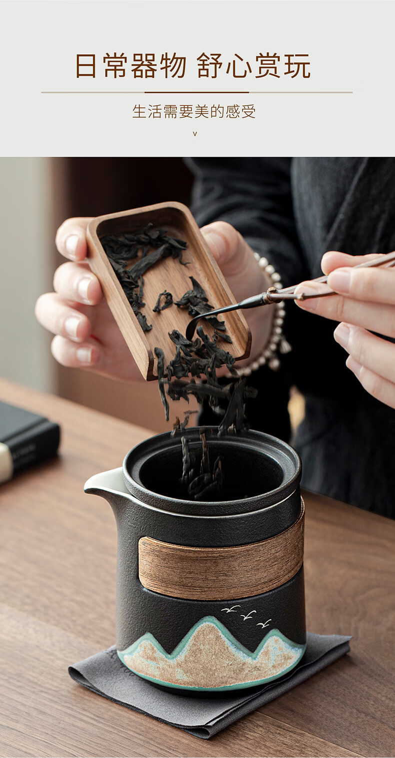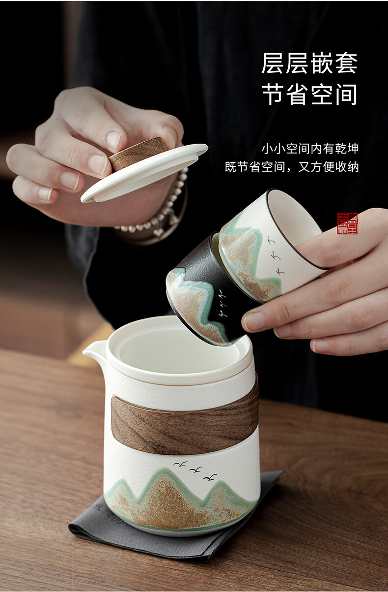 Tangfeng travel tea set, one pot and two cups, outdoor travel portable quick cup, birthday gift for elders, business souvenir, Yahei Qianli Jiangshan quick cup (with filter)