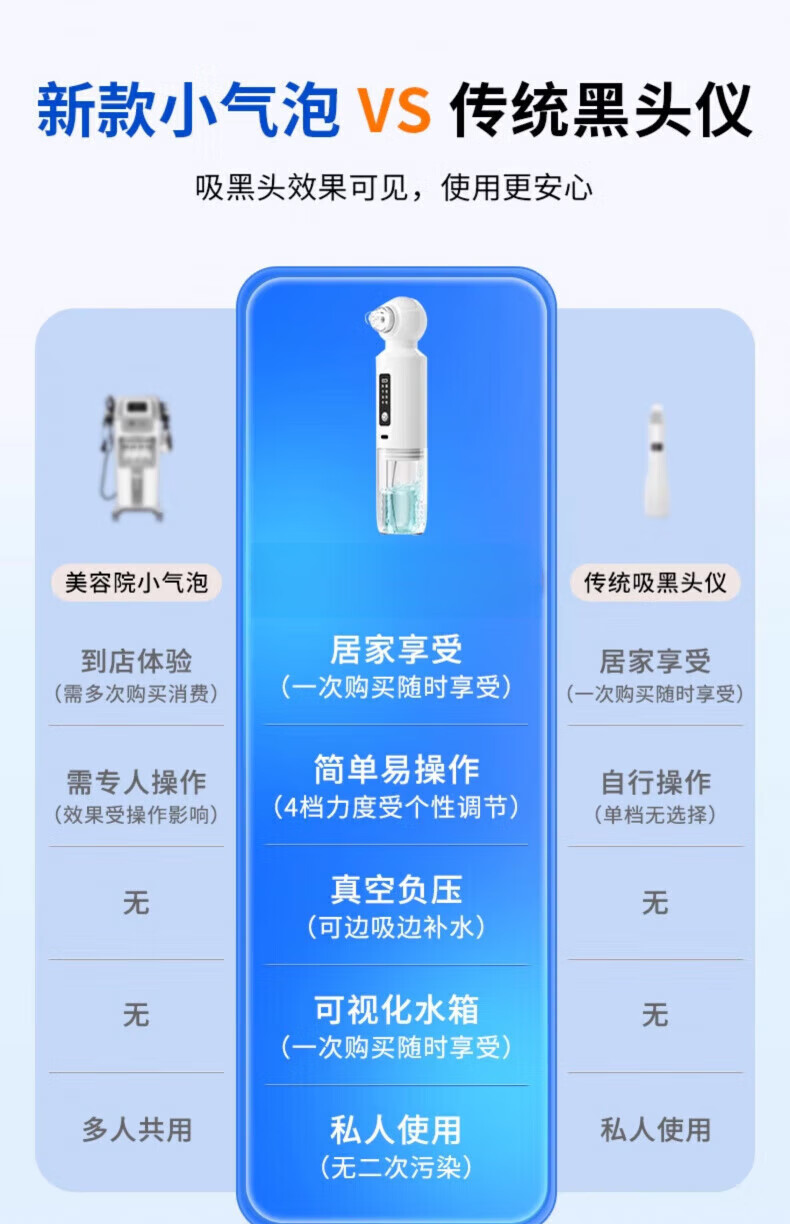 DIKTT German blackhead suction device, small bubble beauty instrument, nose pore electric facial cleanser, acne remover, blackhead extractor, pore vacuum cleaner, painless and skin-free, fully equipped with built-in hot compress + automatic pore cleaning