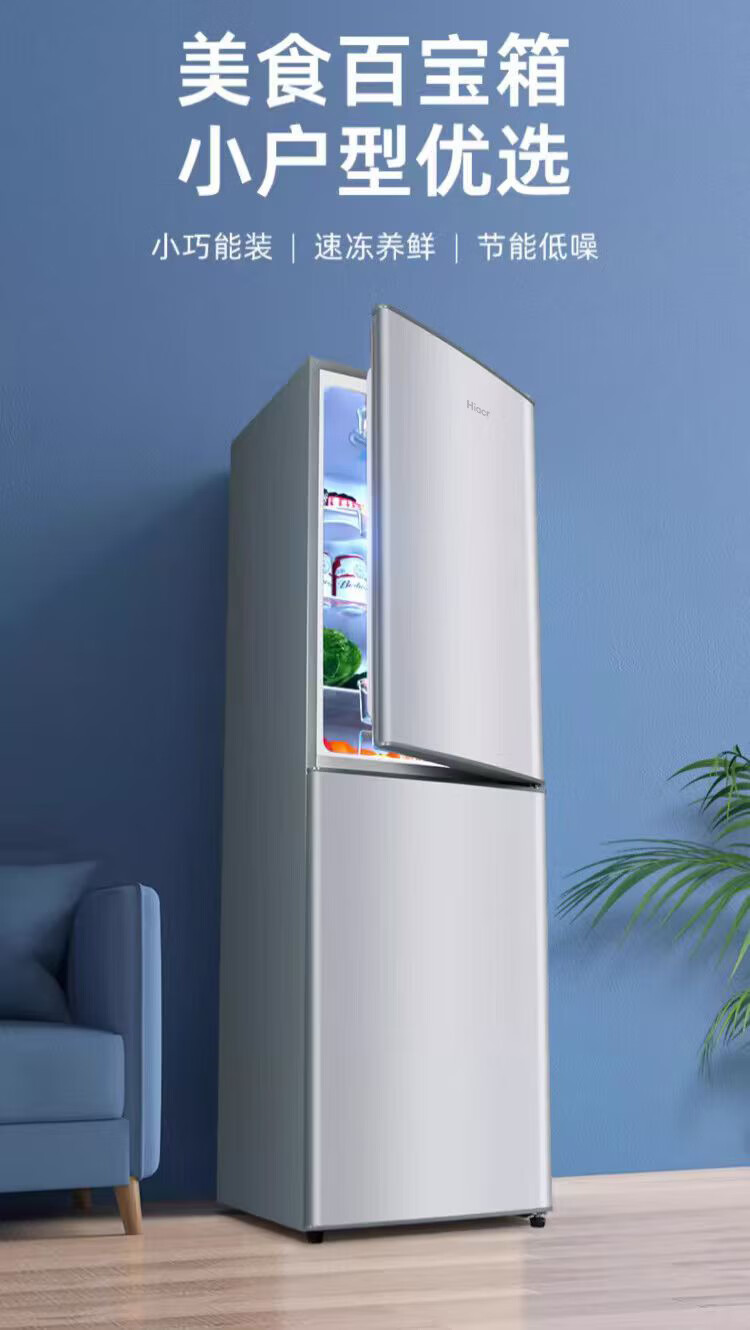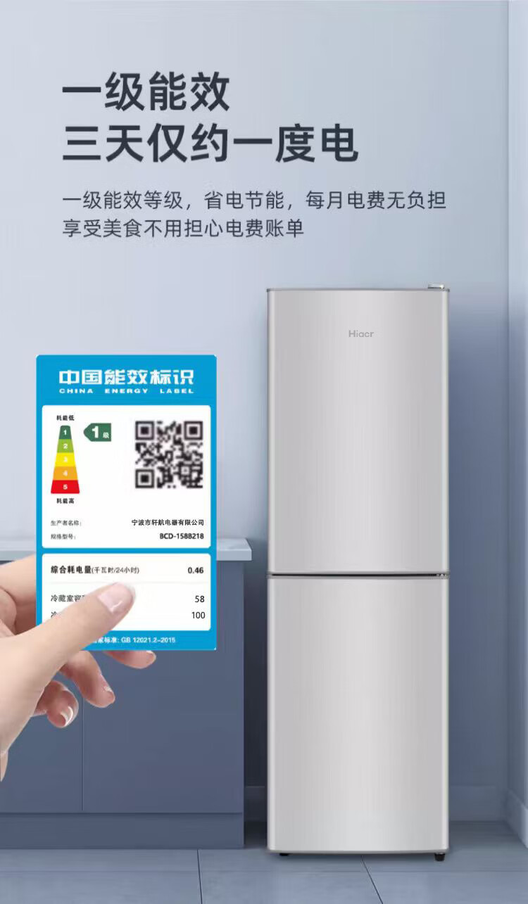 Hiacr small refrigerator small household first-class energy efficiency refrigeration and freezing dual-purpose dormitory rental double-door office refrigerator energy-saving refrigerator top capacity BCD-218B288 upgraded model-218 liters