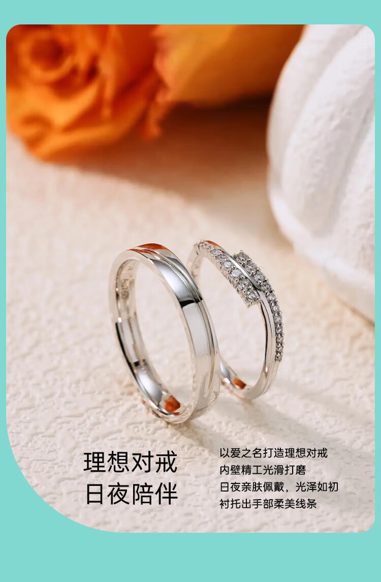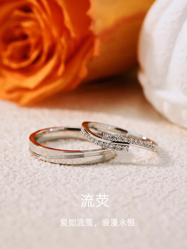 The Key to True Love - pt950 Platinum Ring Couple's Ring Natural Diamond Niche Light Luxury Customized Engraving Pair PT950 Platinum Women's Ring No. 9-12 Single