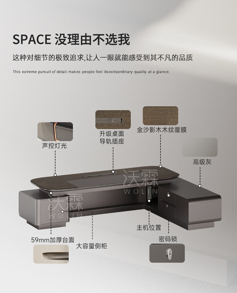 Wolin EO environmentally friendly high-end boss desk modern chairman desk light luxury office desk and chair office executive desk boss desk