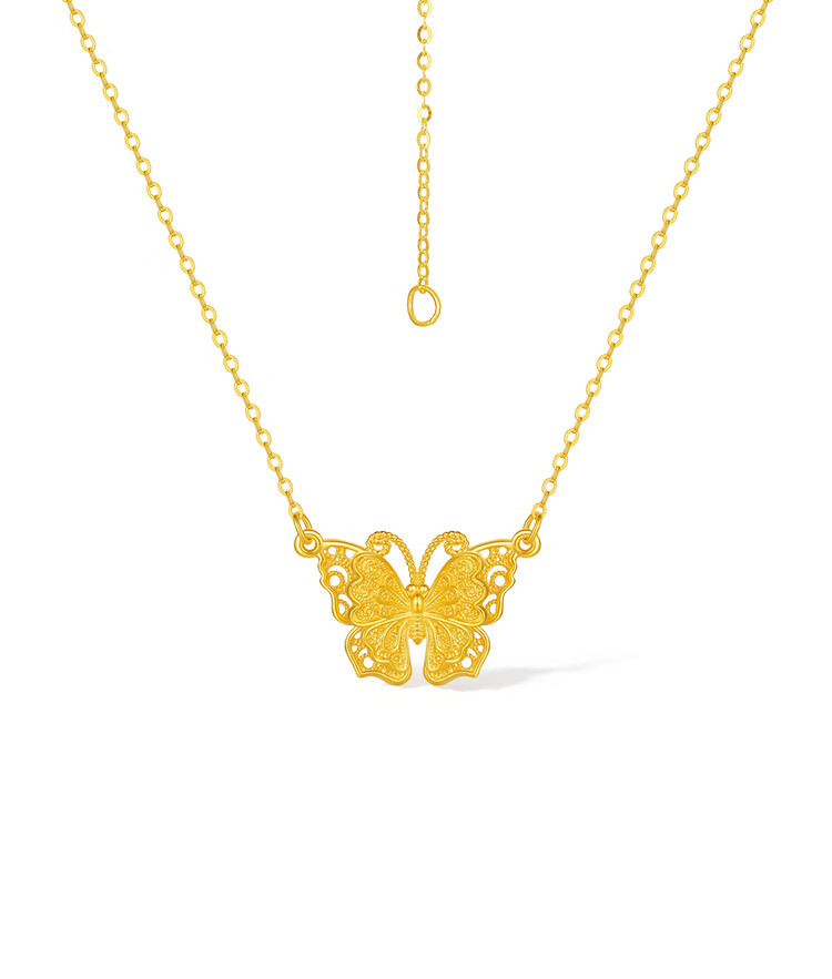 Saturday Lucky Yellow 18K Gold Necklace Women's Butterfly Pendant Fashionable and Exquisite Holiday Gift for Girlfriend 40+5cm Butterfly Pendant