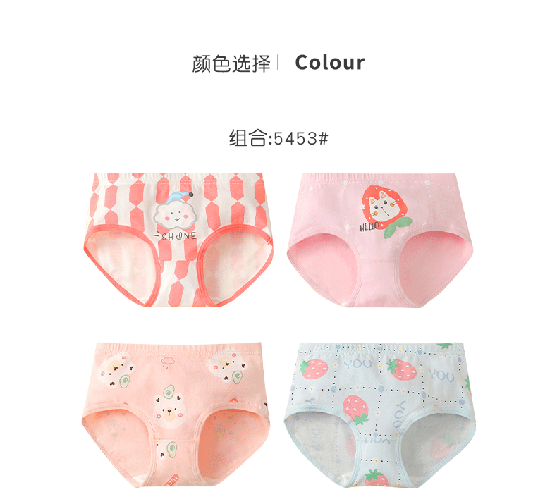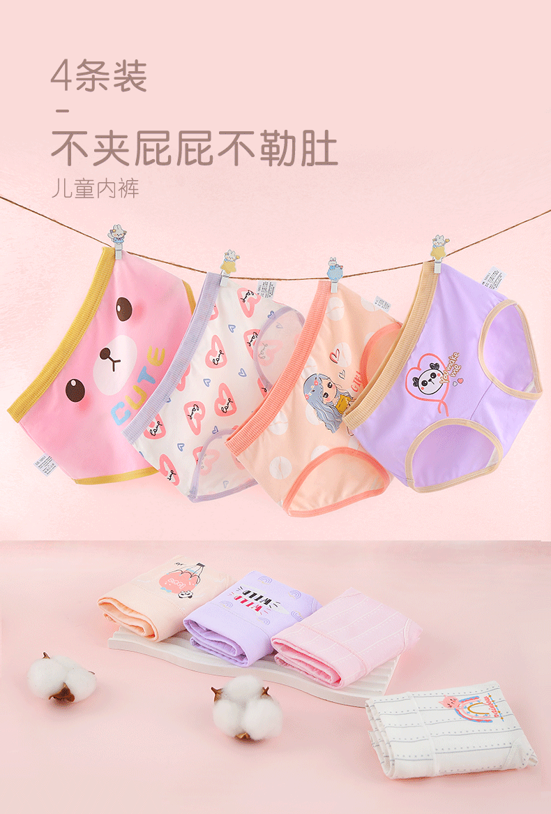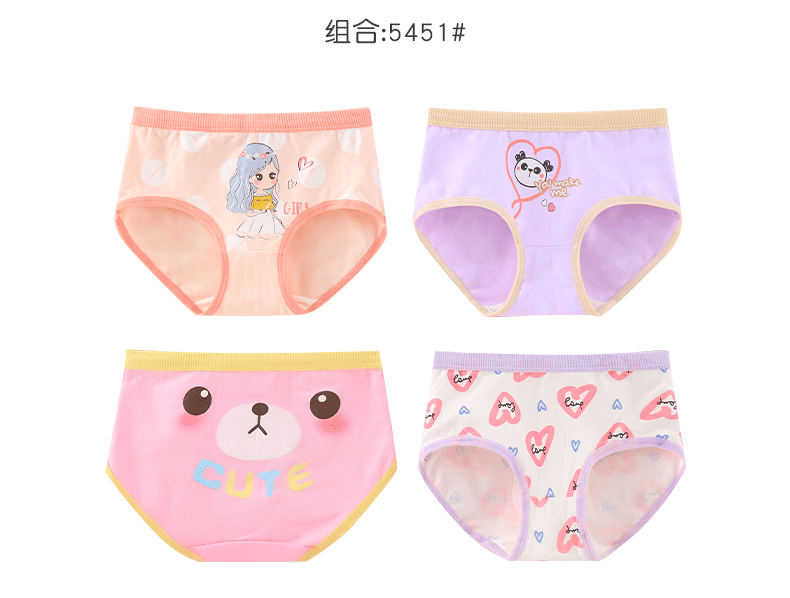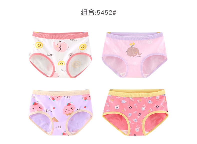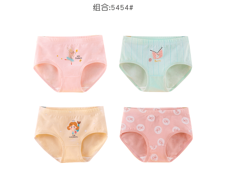 Xia Tong children's pure cotton underwear without clipping pp medium and large children's class A briefs girls breathable cartoon 5451# 4 pieces 52 (2XL) 45~60Jin Jin is equal to 0.5 kg