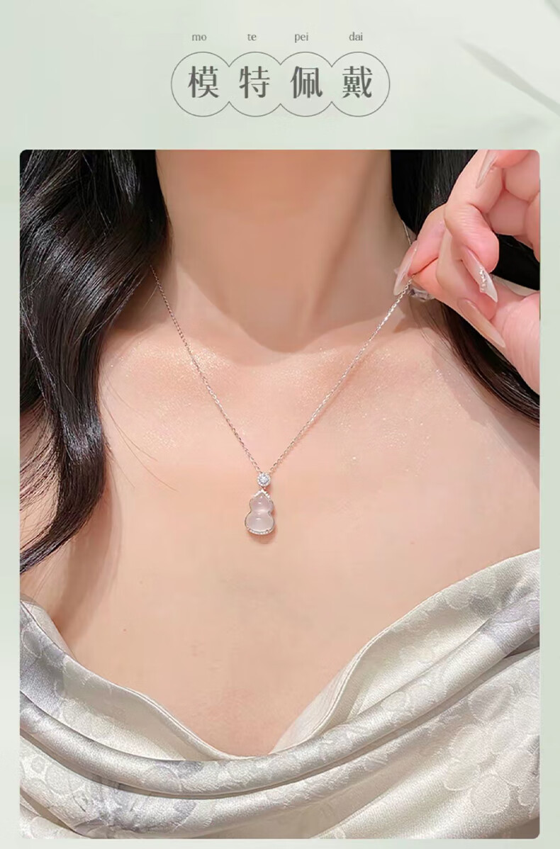 China Gold S925 Silver Fulu Double Necklace Chalcedony Gourd Pendant Practical Birthday Gift for Girlfriends Classic Red Gift Box *Shipping from Yakura* Same Day/Next Day Delivery
