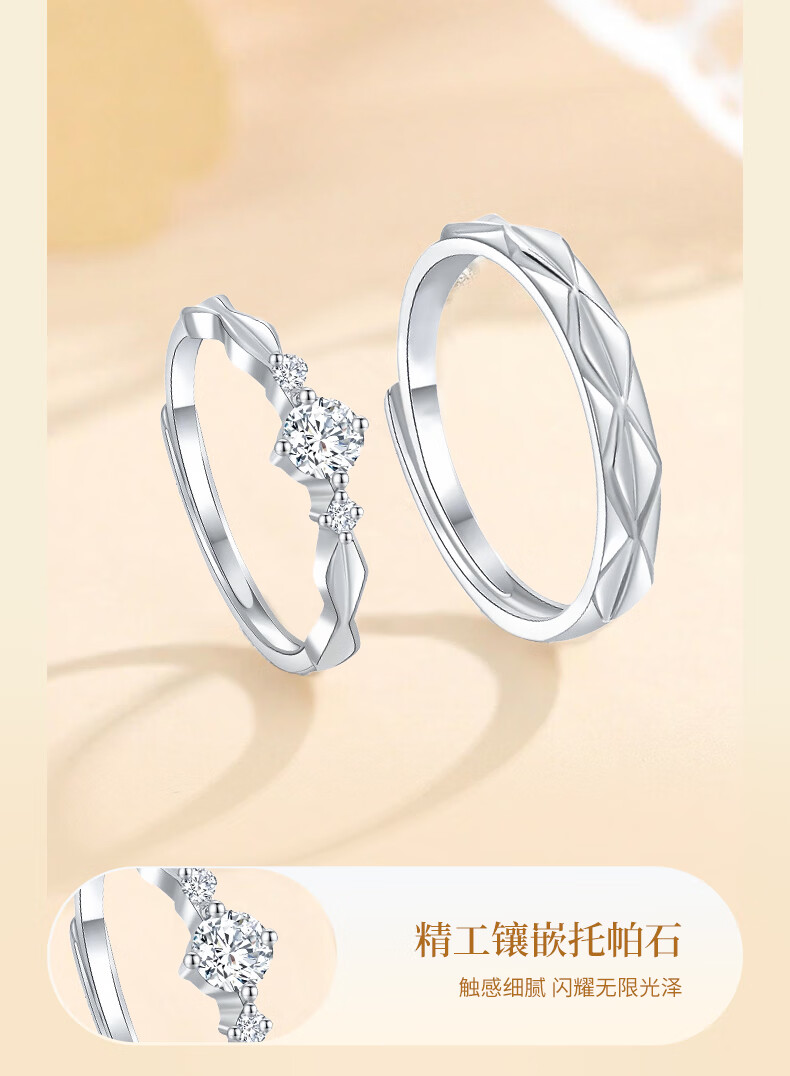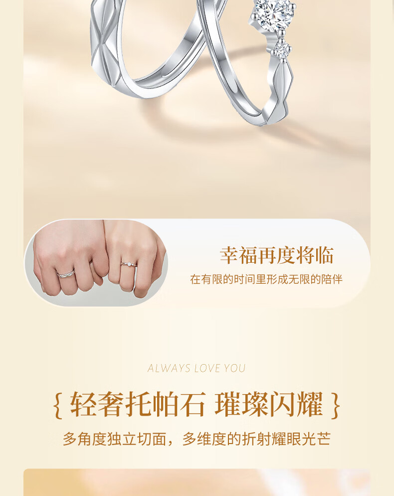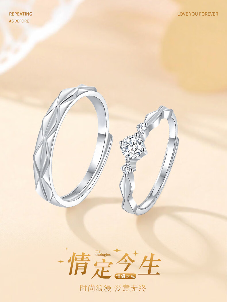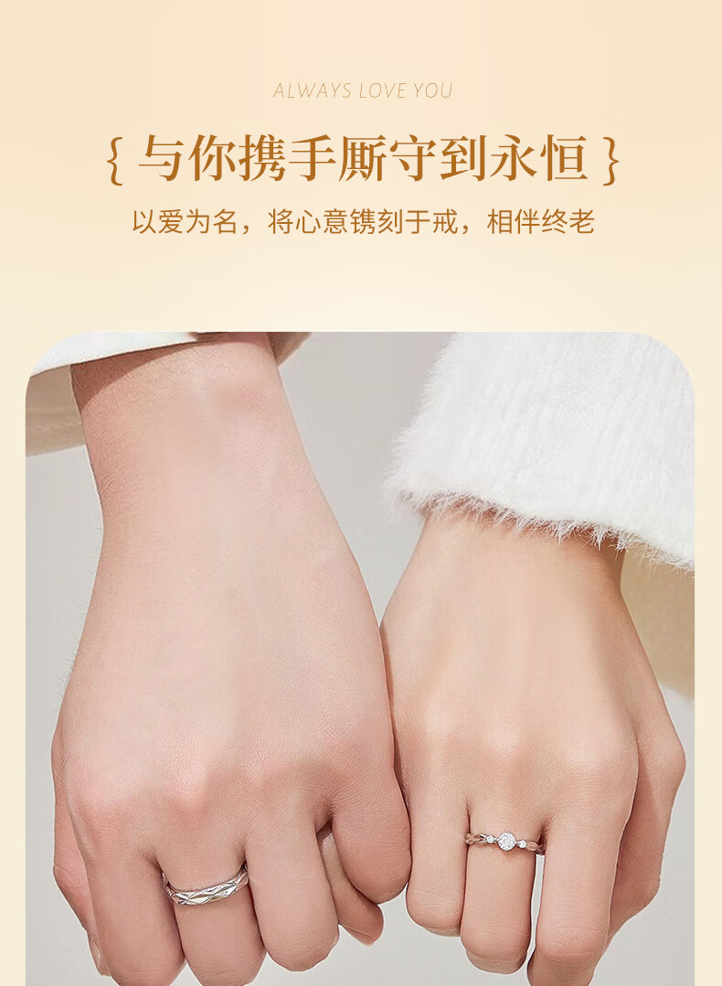 Chinese gold love-for-life couple rings, a pair of silver rings for a man and a woman, a marriage proposal, birthday gift for girlfriend and wife to commemorate, love-for-life rings, bouquet gift box