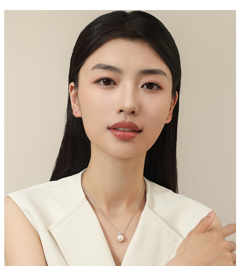 Dan Pei luxury high-end pearl pendant necklace for women round strong light pearl large size pendant plain bead clavicle chain 10-11mm, 40+5cm extension chain with tail tag (free