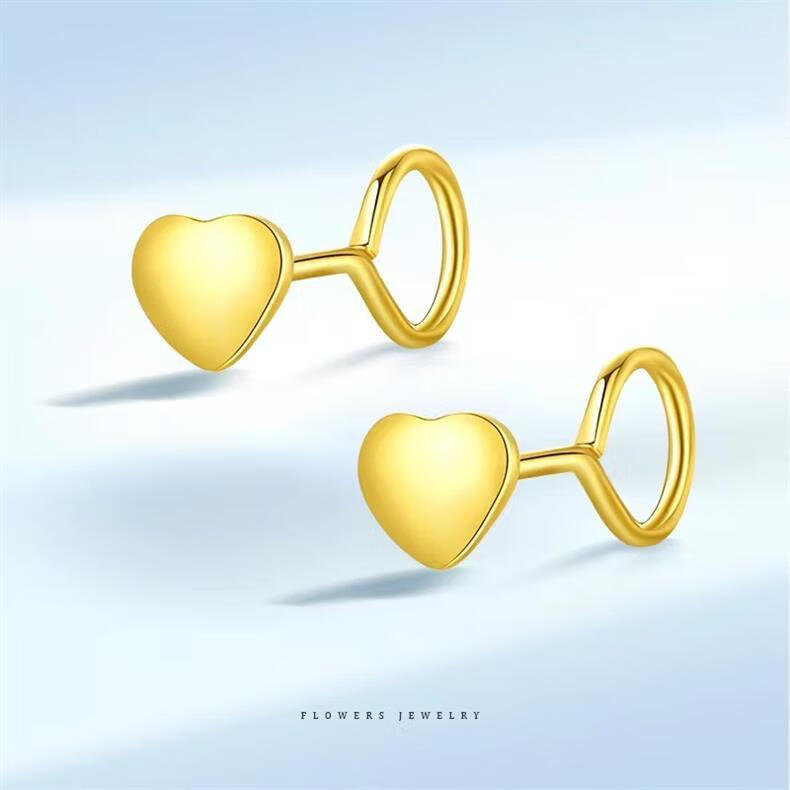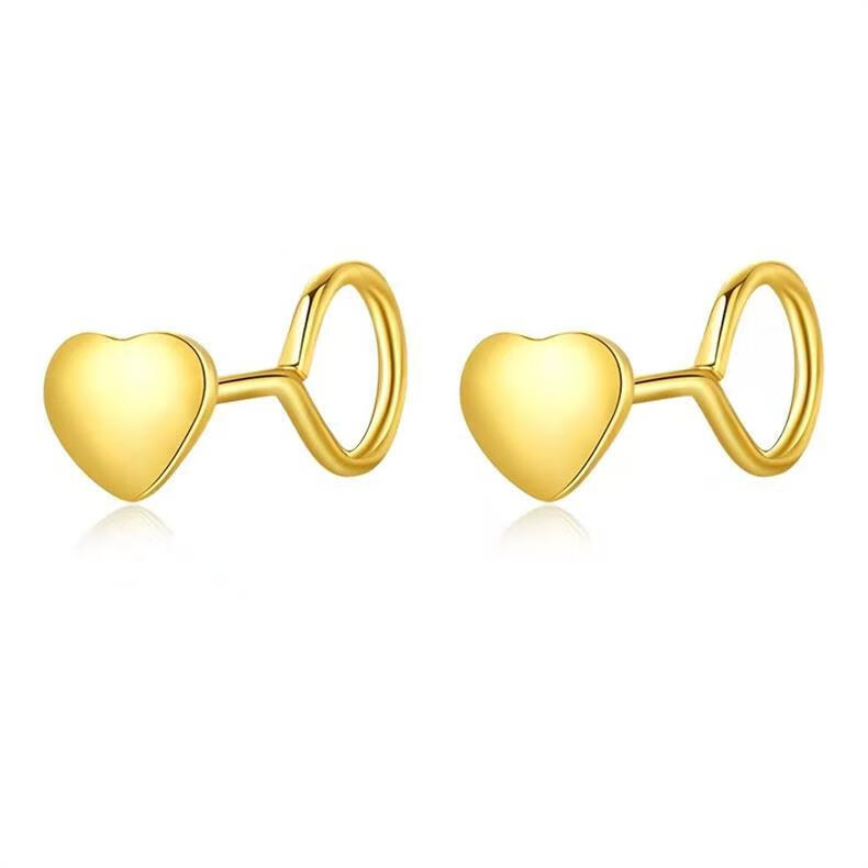 Dewey Fan's gold-plated silver love heart stud earrings, men's and women's earrings, fashionable design, temperament earrings, girlfriend gift, 9-character needle earrings (love style) (gold layer thickened)