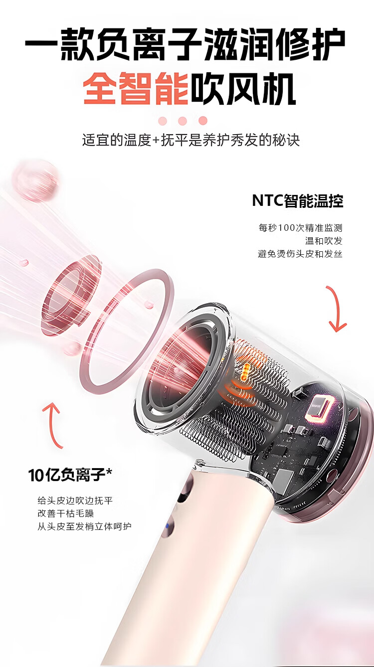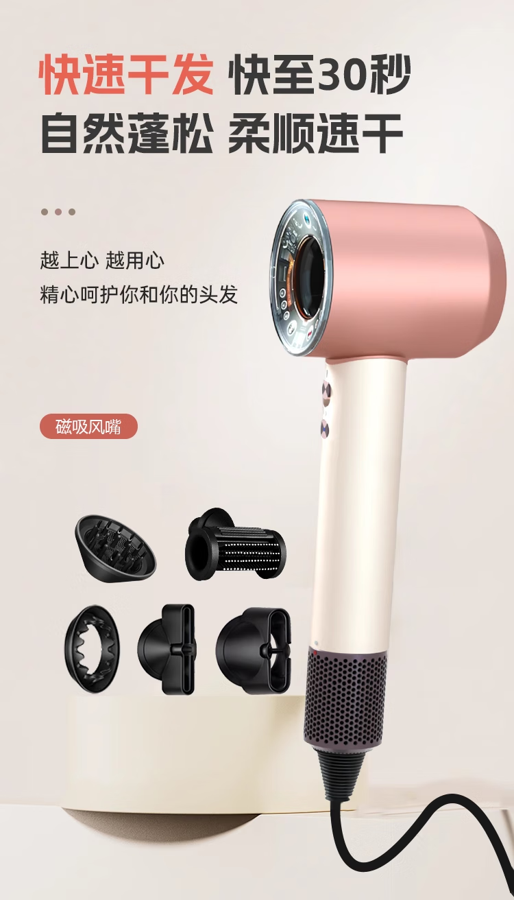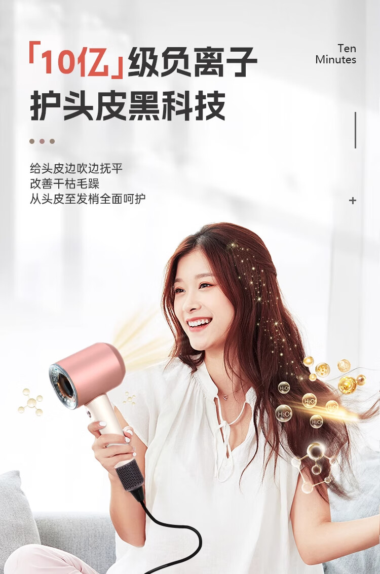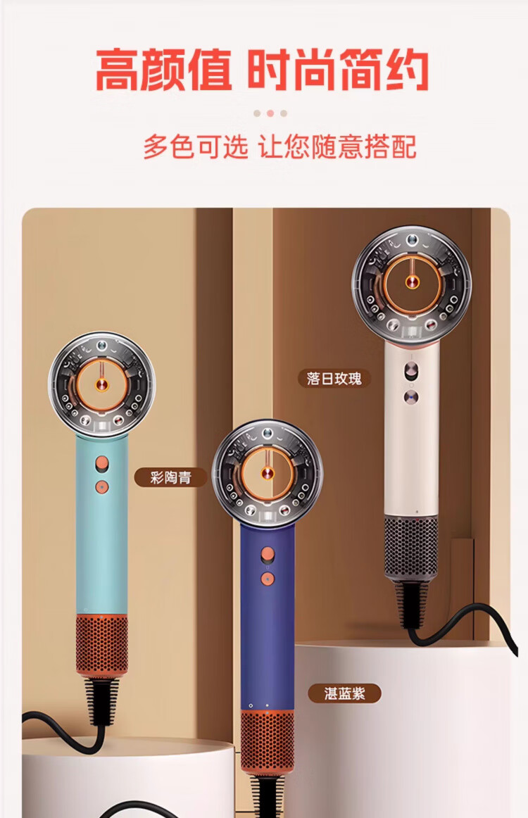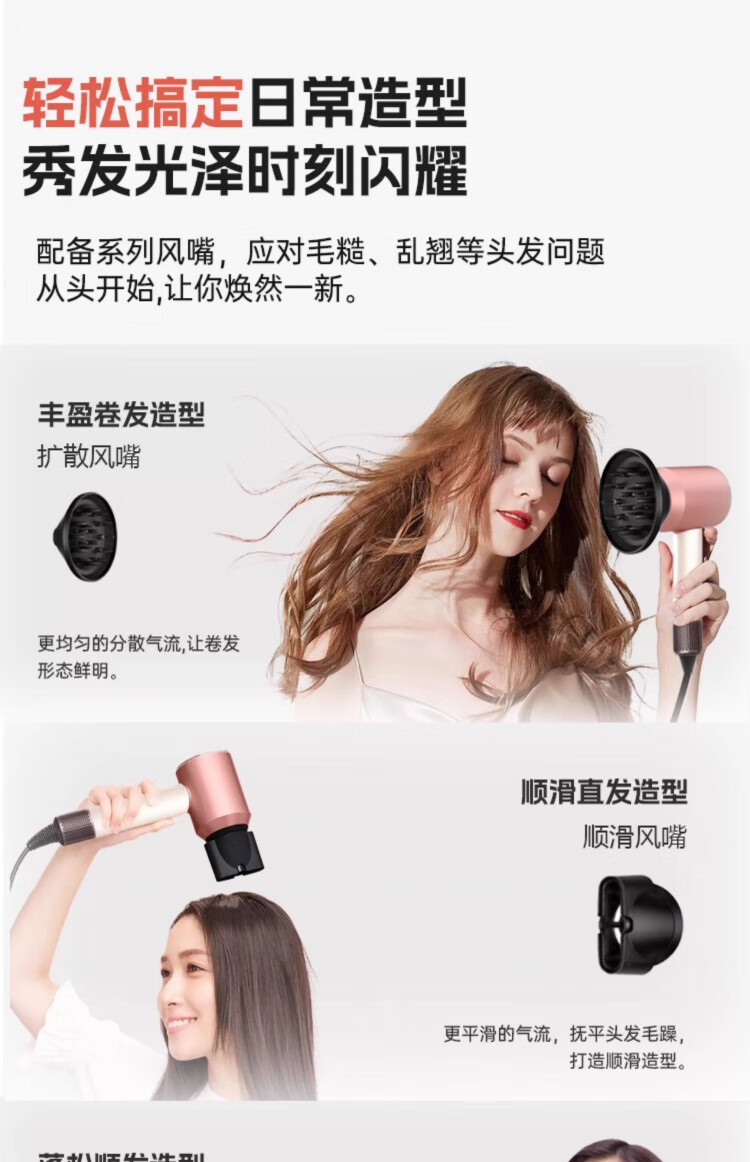 Sawang Germany Hair Dryer Home Silent Negative Ions High Power Non-Hazardous Hair Care Leafless Hair Dryer Quick-drying Portable Styling Hotel Hair Salon Girlfriend Wife Sunset Rose + Single Nozzle 3 Billion Negative Ions Professional Constant Temperature Hair Care