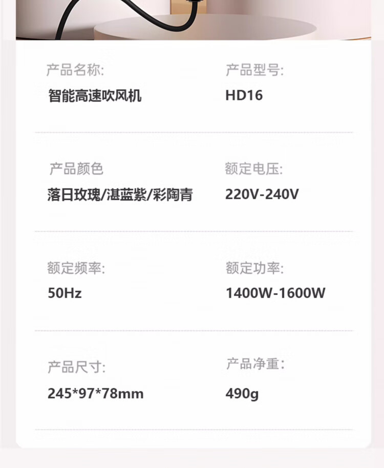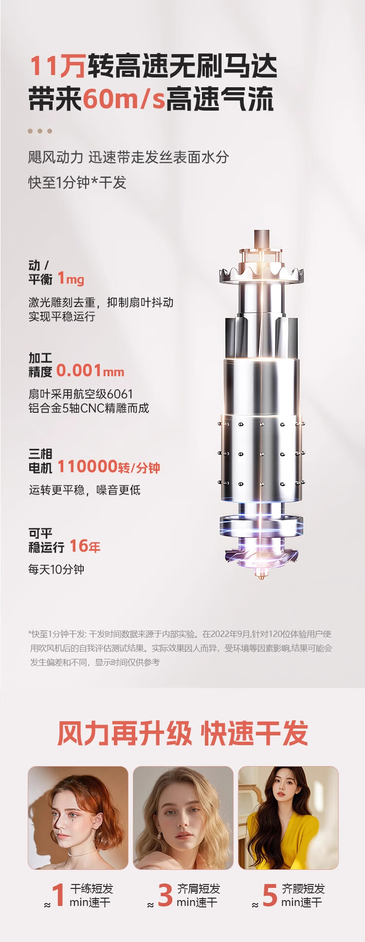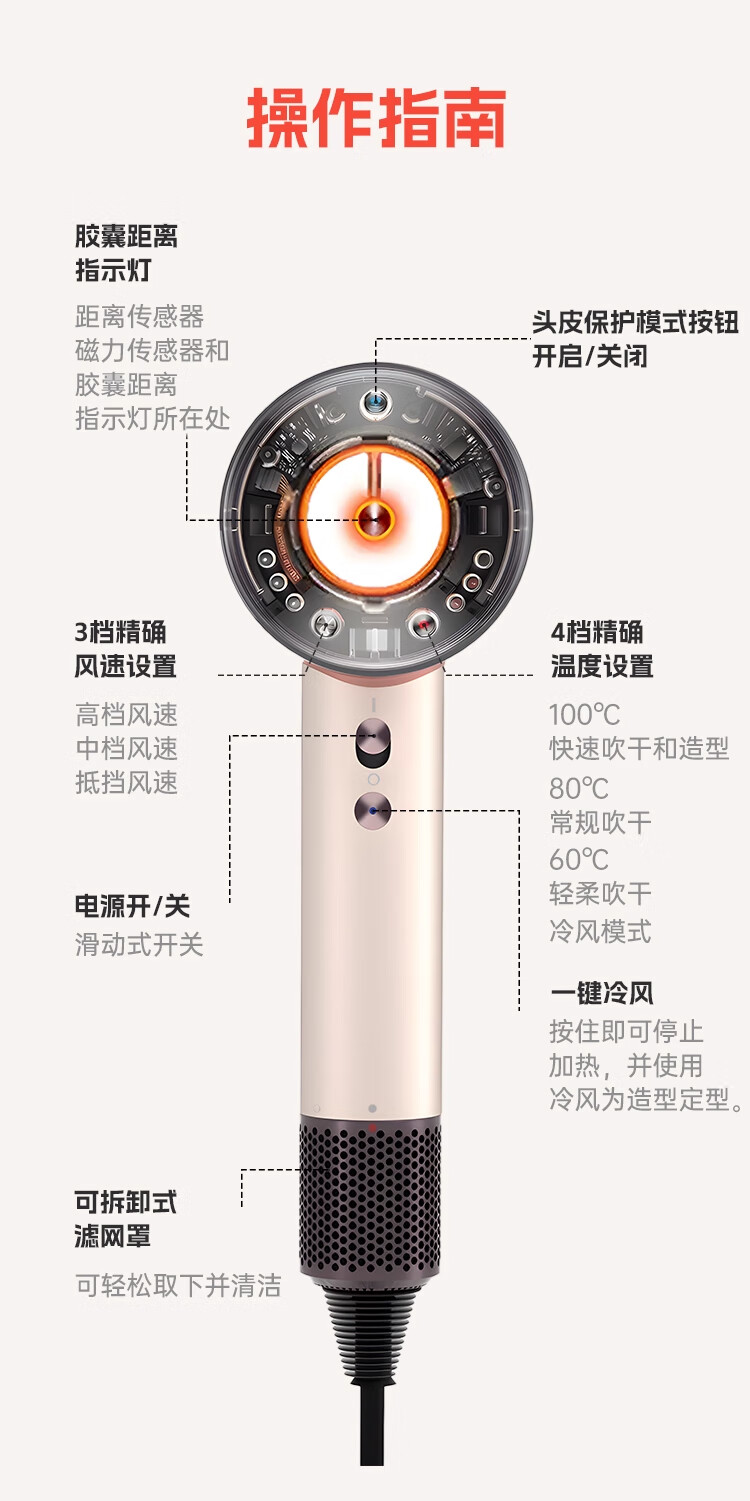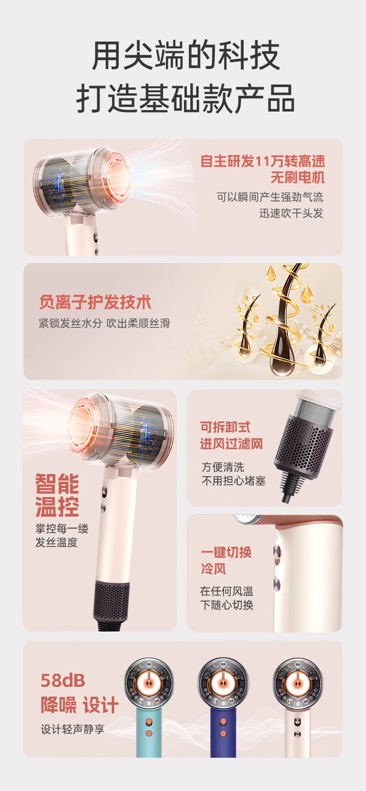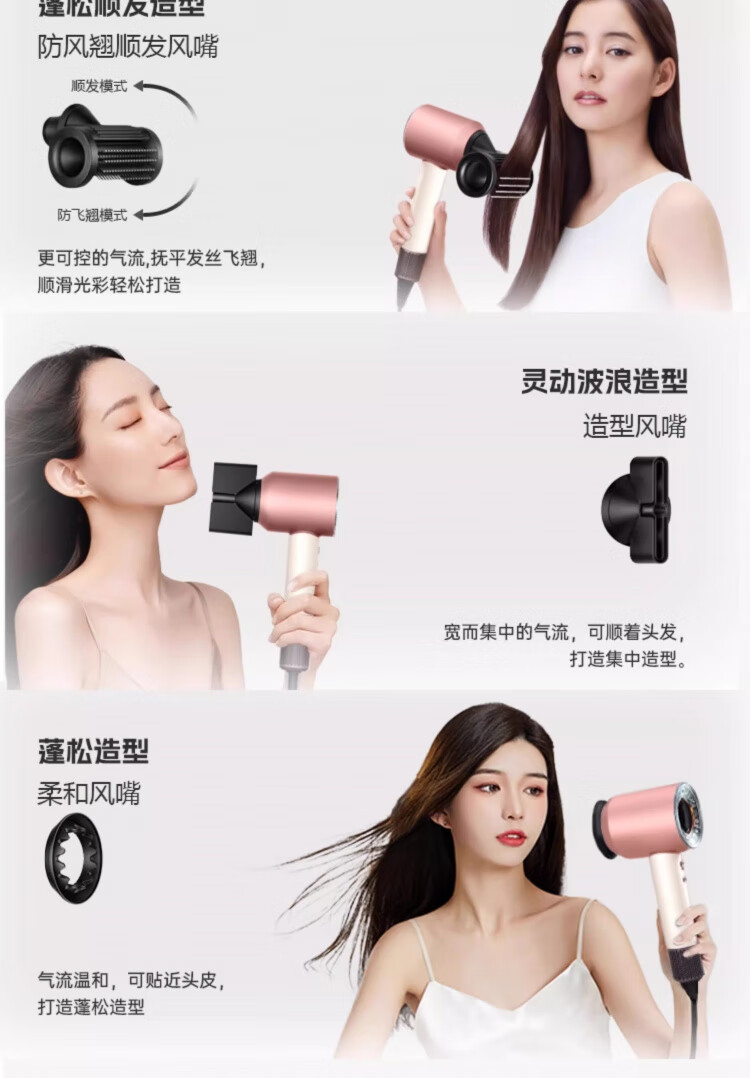 Sawang Germany Hair Dryer Home Silent Negative Ions High Power Non-Hazardous Hair Care Leafless Hair Dryer Quick-drying Portable Styling Hotel Hair Salon Girlfriend Wife Sunset Rose + Single Nozzle 3 Billion Negative Ions Professional Constant Temperature Hair Care