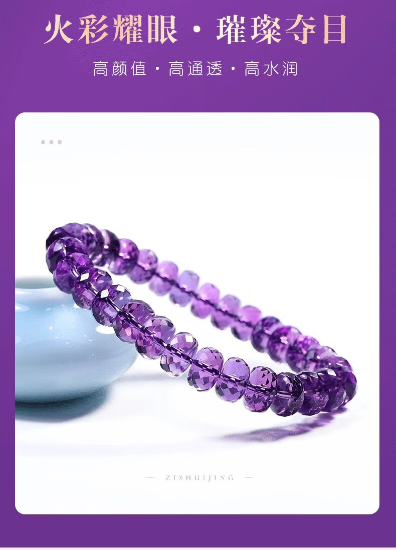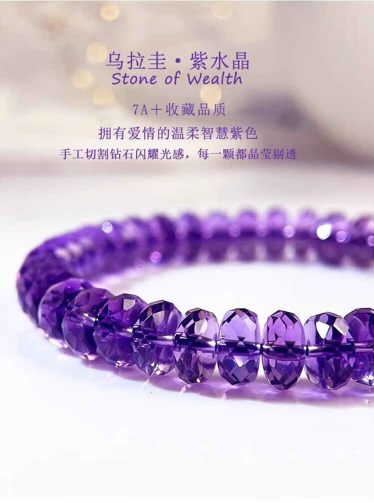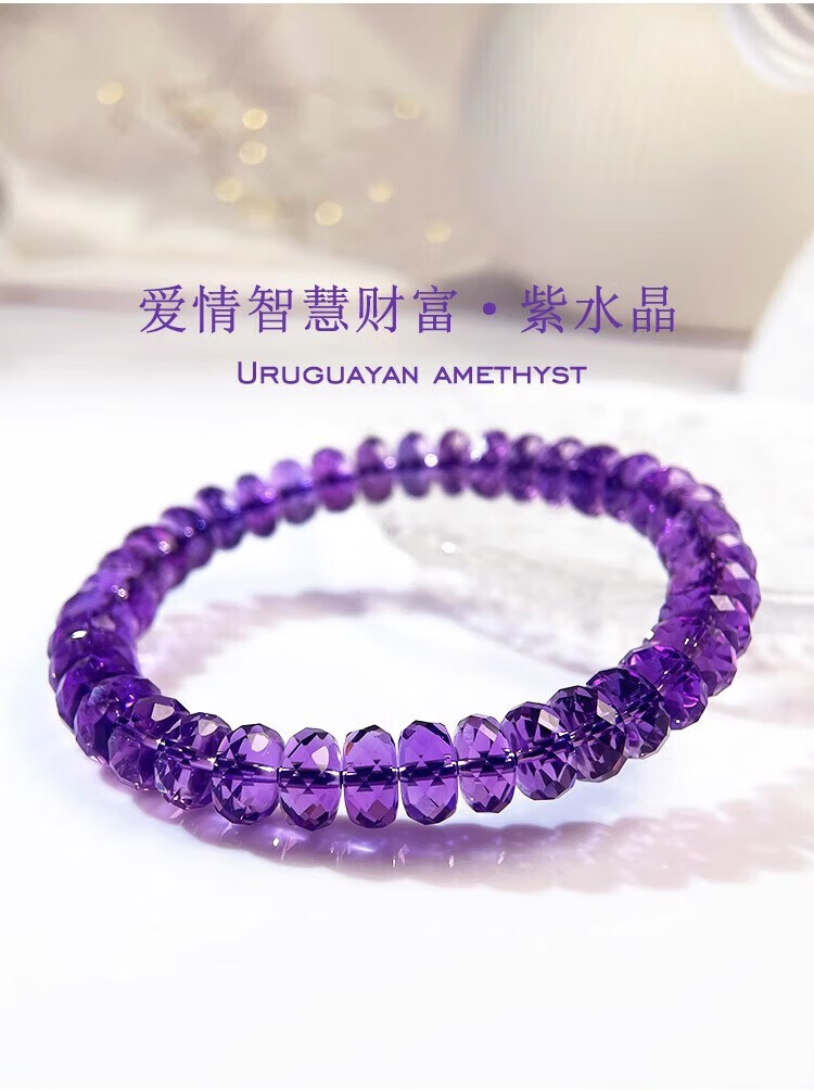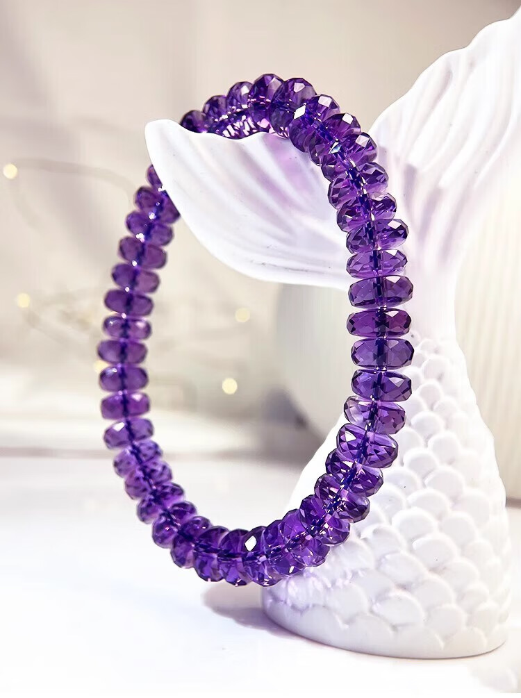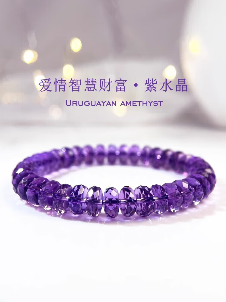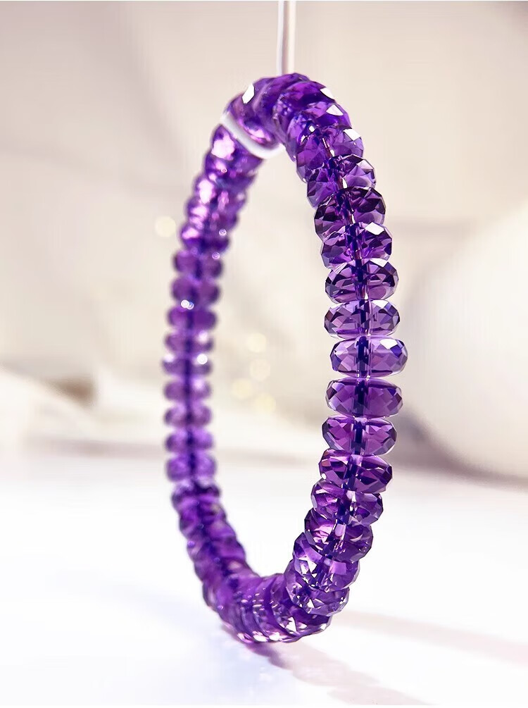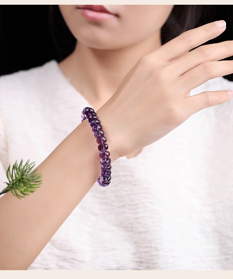 Etcol Natural Uruguayan Amethyst Abacus Bead Bracelet Women's Faceted Wheel Bracelet as Valentine's Day Gift for Girlfriend and Wife Boutique Grade Faceted Amethyst-8mm