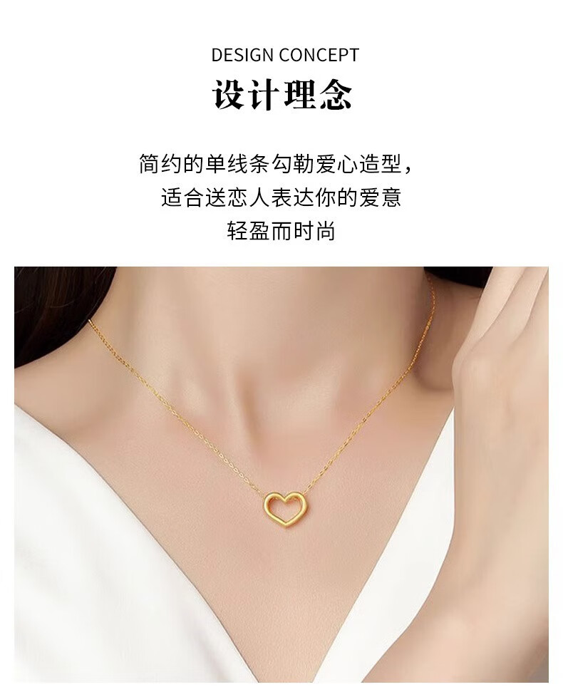 Dewey Fan 999 Pure Gold Silver Necklace Women's Gold Love Pendant Clavicle Chain Temperament Niche Gift for Girlfriend's Birthday Love+s925 Necklace (Thick Gold Layer)
