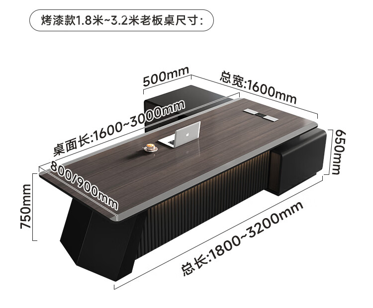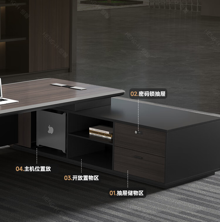 Henghan boss desk comfortable and high-end office manager desk and chair combination simple modern executive desk furniture desktop rounded corner standard 2.0 meter boss desk