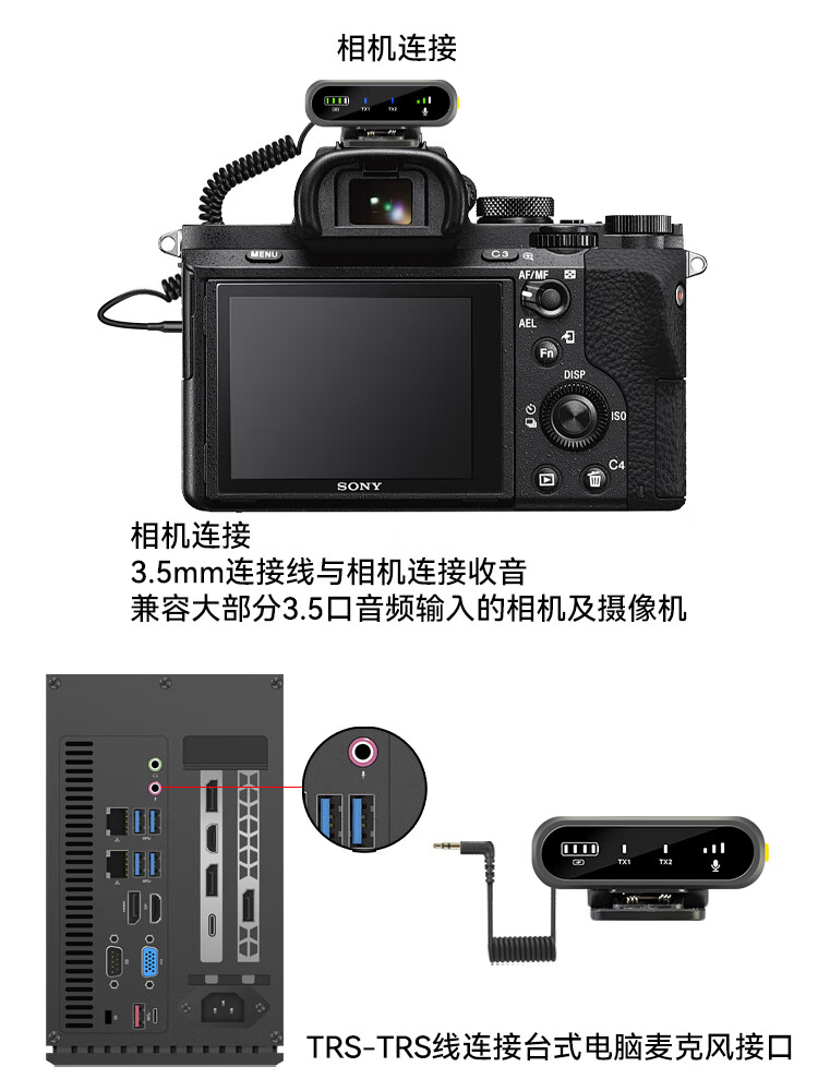IMVP camera wireless lavalier microphone is suitable for Nikon Z6 Z7 Z8 Z30 Z50 D750 D850 D3 D6 MIX camera noise reduction video recording microphone 2 one for two, suitable for cameras and mobile phones, with monitoring headphones
