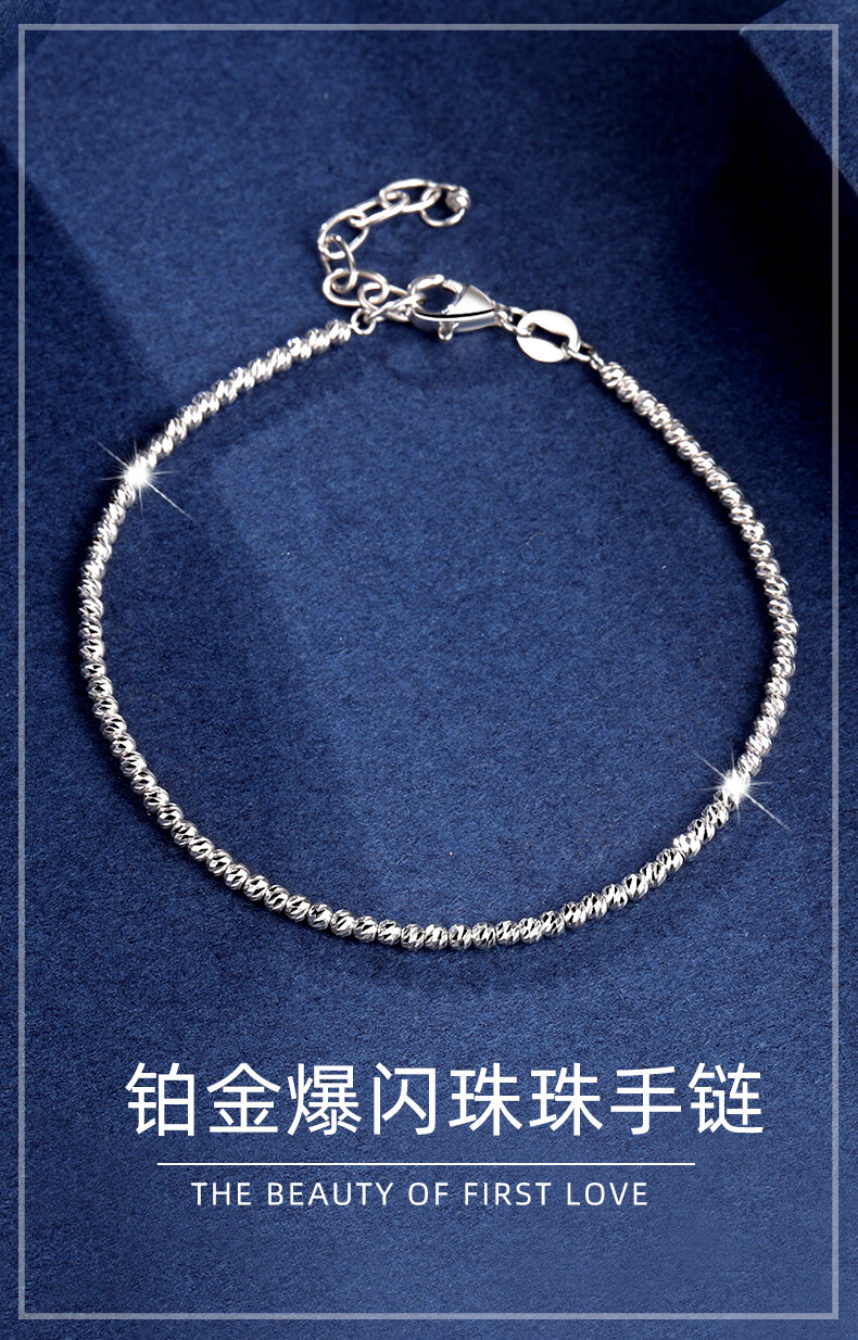 Jin Duoxi Pt950 platinum bracelet for women, dancing beads, galaxy platinum bracelet, sparkling, adjustable hand jewelry, gift for girlfriend, about 18+3cm, about 2mm thick, about 3.8-4 grams in weight