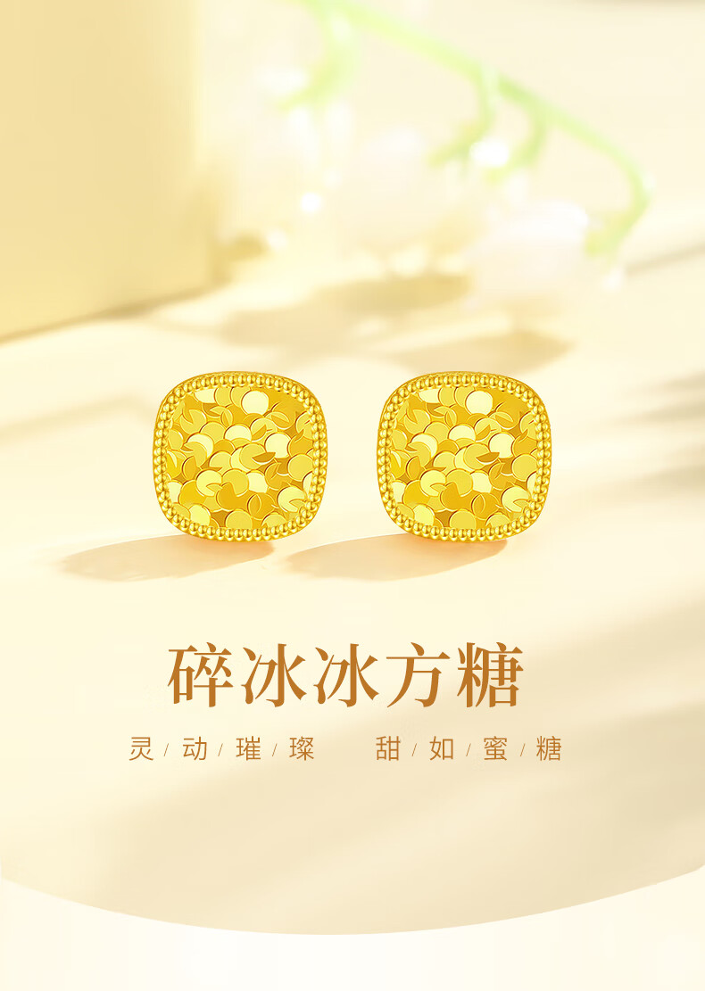 Chinese gold crushed ice sugar cube gold earrings 18k gold earrings niche birthday gift for girlfriend and wife wedding anniversary 18k crushed ice sugar cube earrings