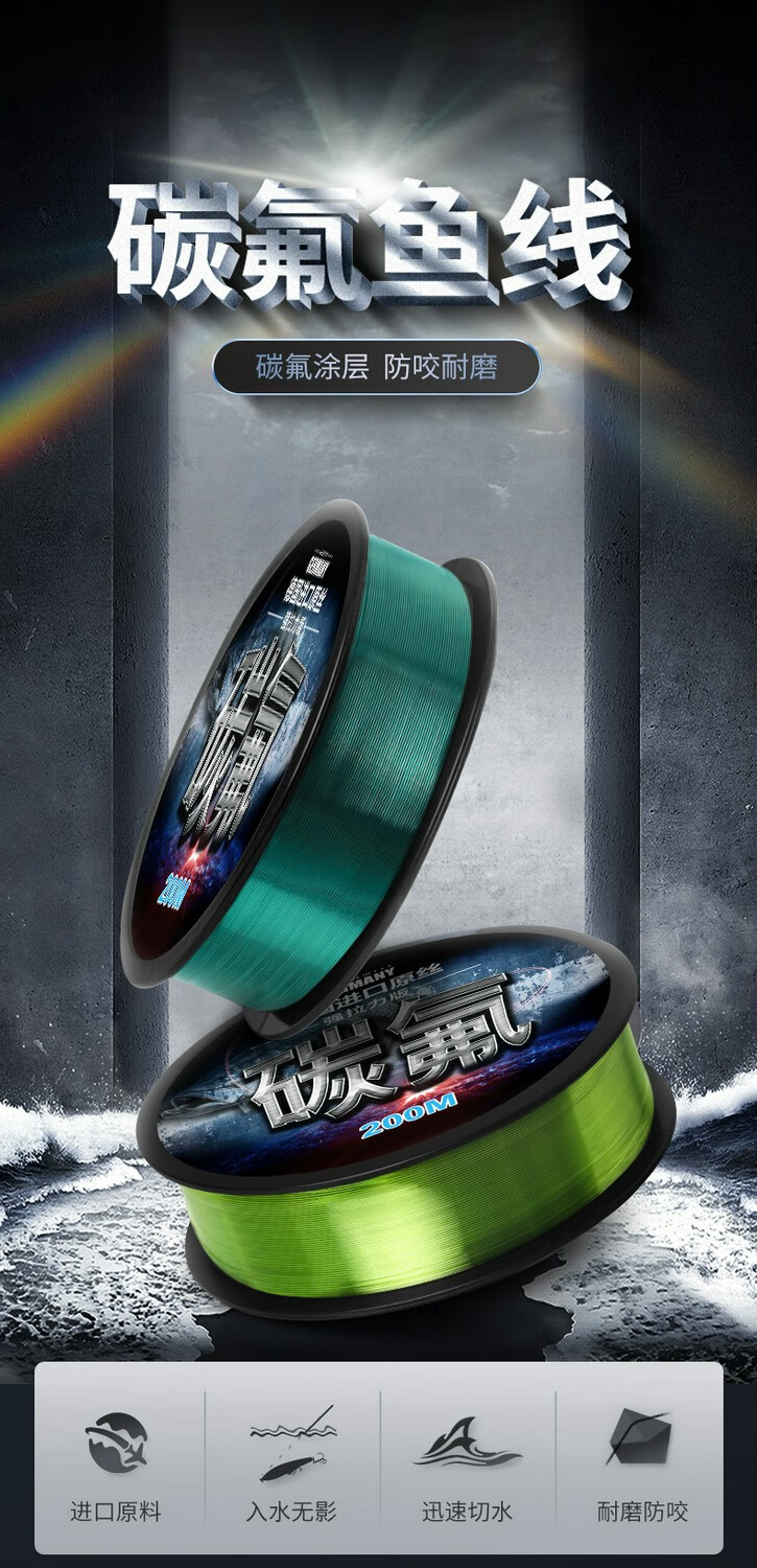 Dayiwa fishing line raw silk submersible fast main line sub-line carbon line non-rolling anti-tangle finished line tension German imported fluorocarbon 200 meters - transparent color No. 3