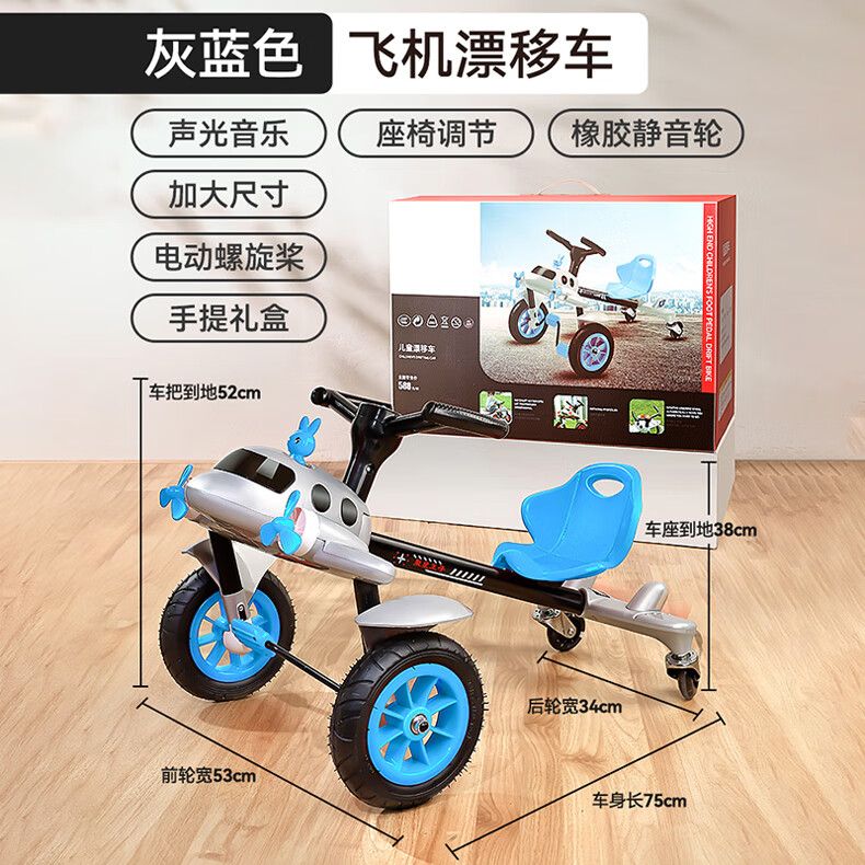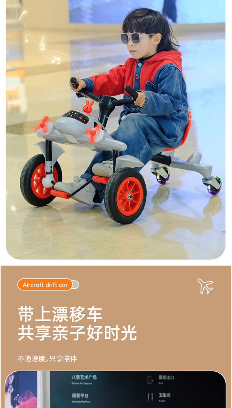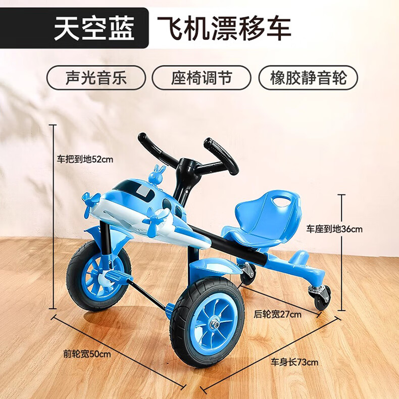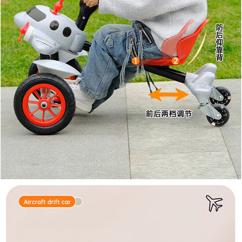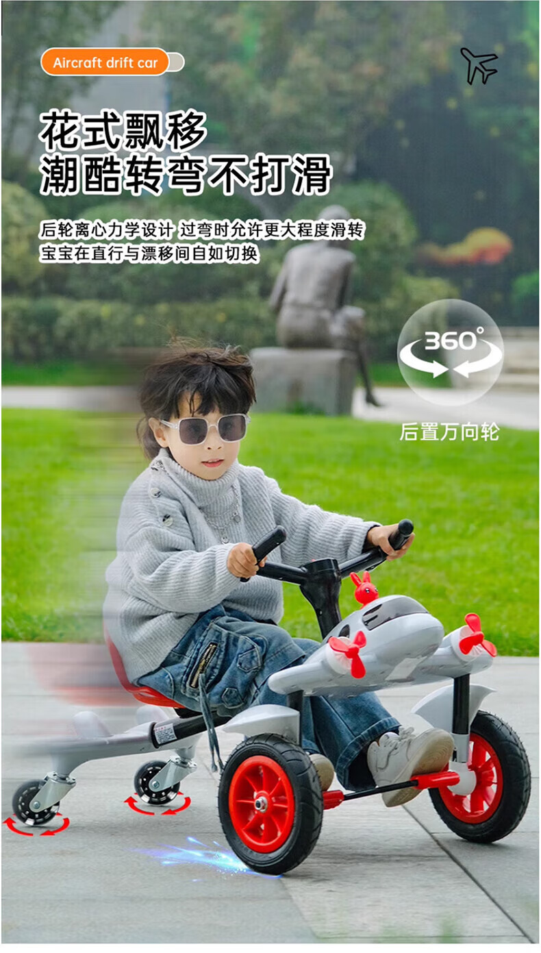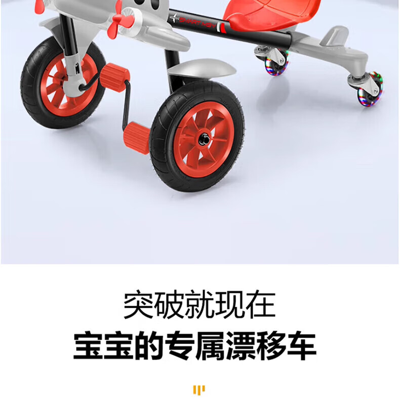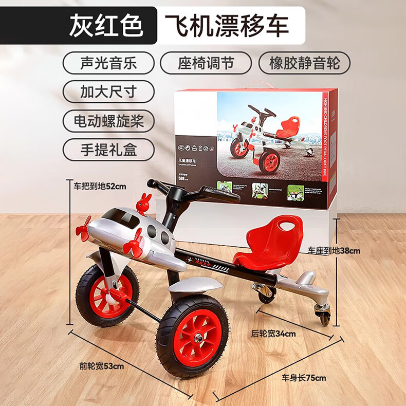 Becky Drift Car Children's Tricycle Sam Airplane Car Bicycle 3-6 Years Old Twist Car Boys and Girls Birthday Gift Red丨Music Lighting + Seat Adjustment + Rubber Wheel