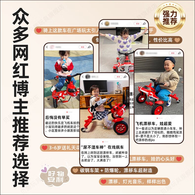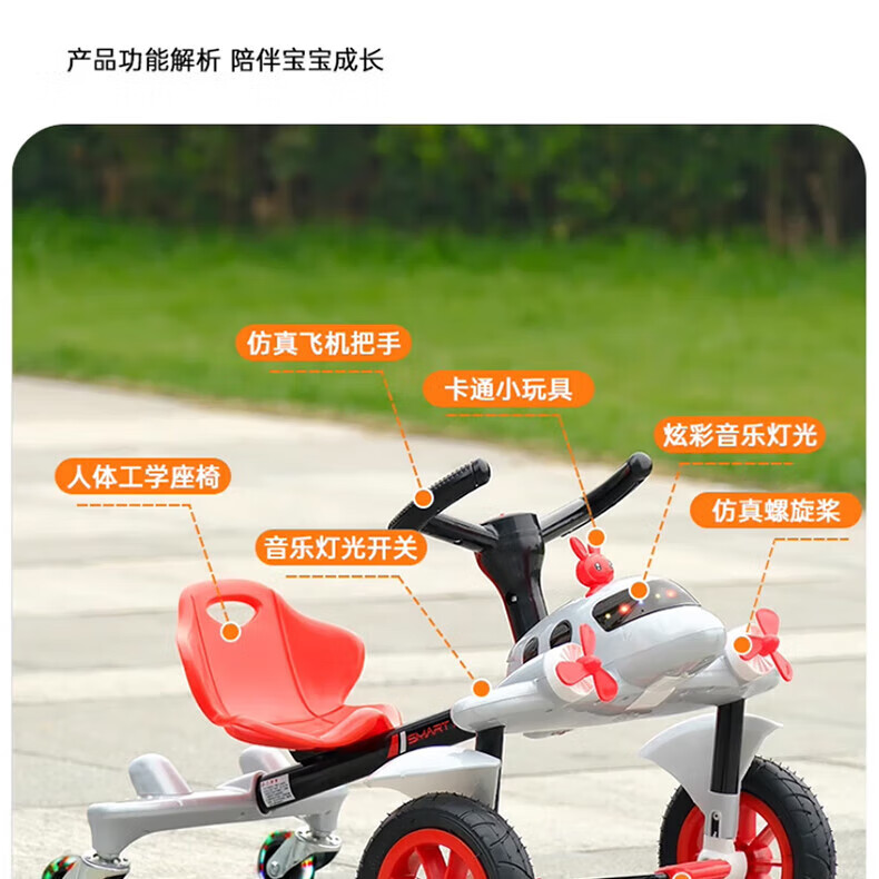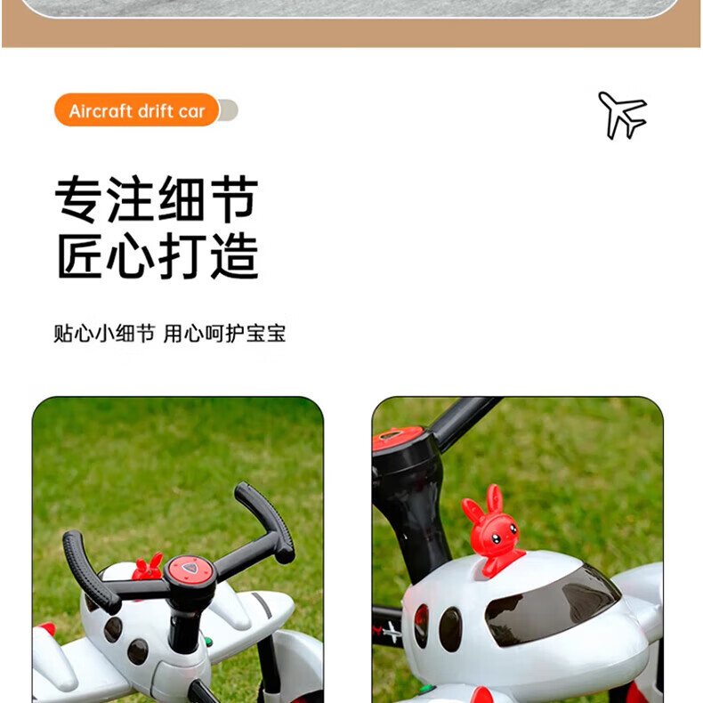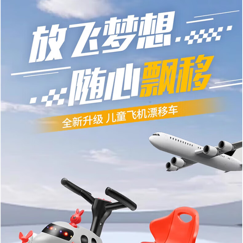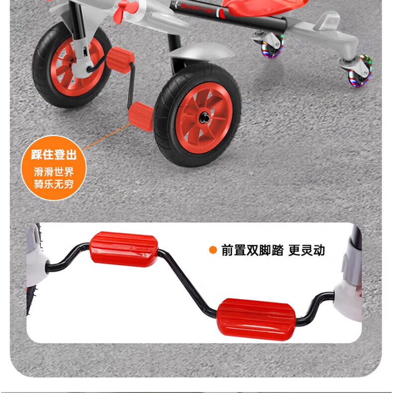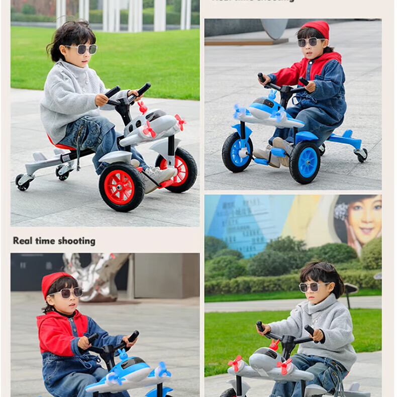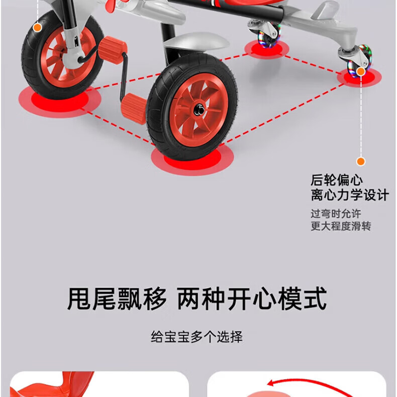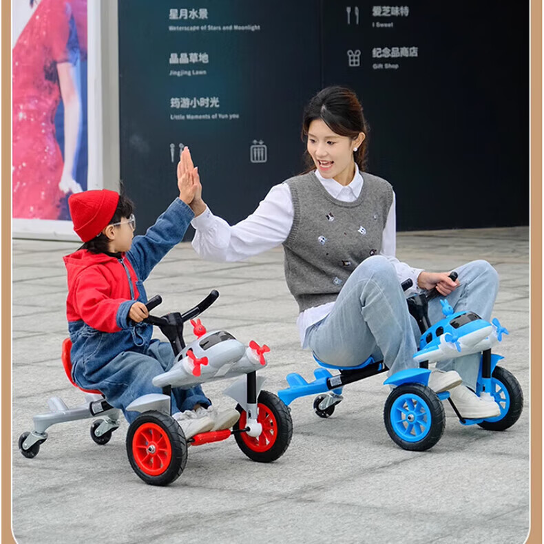 Becky Drift Car Children's Tricycle Sam Airplane Car Bicycle 3-6 Years Old Twist Car Boys and Girls Birthday Gift Red丨Music Lighting + Seat Adjustment + Rubber Wheel