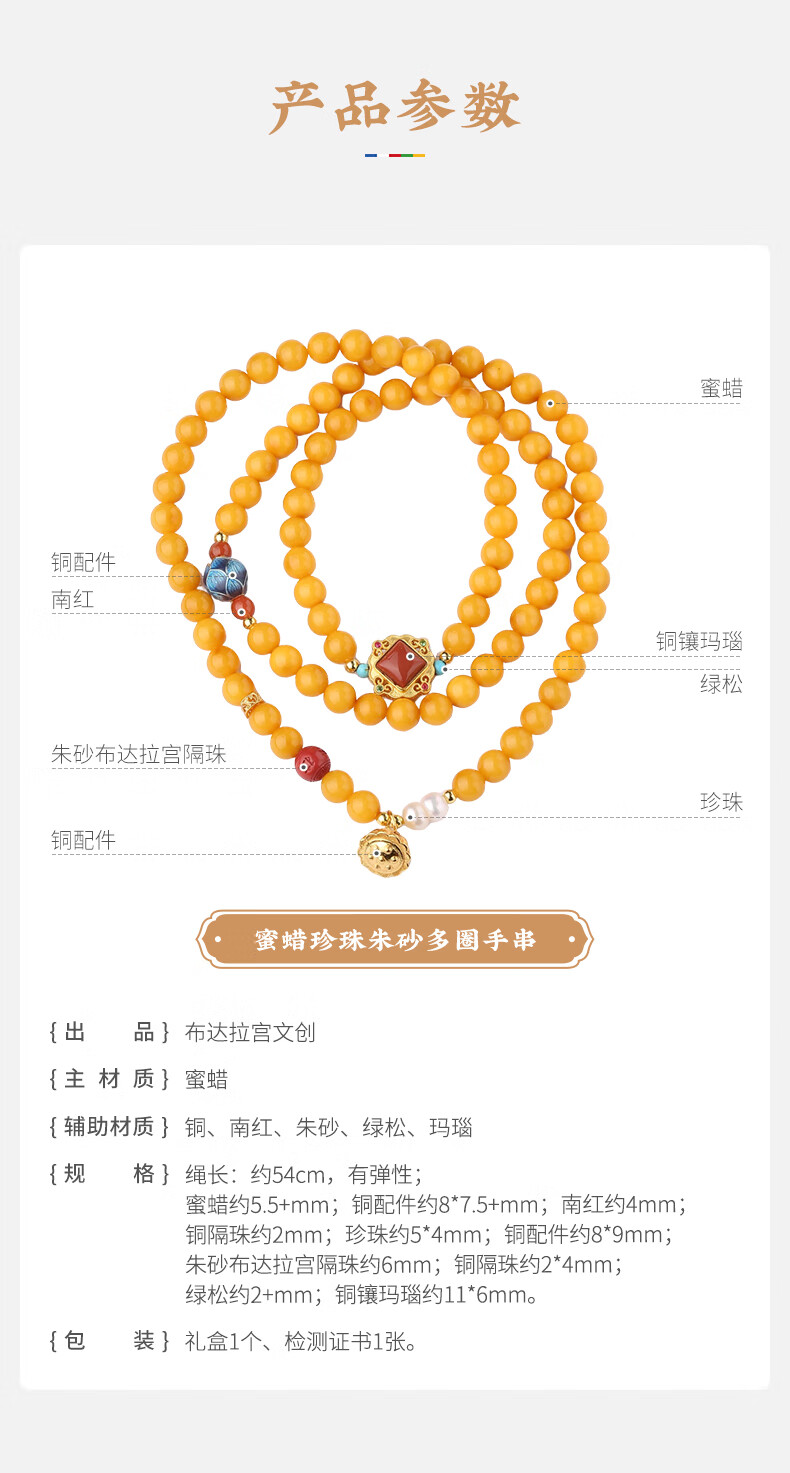 Potala Palace Beeswax Pearl Cinnabar Multi-circle Bracelet Niche Design Southern Red Turquoise Pearl Agate Women's Bracelet Beeswax Pearl Cinnabar Multi-circle Bracelet