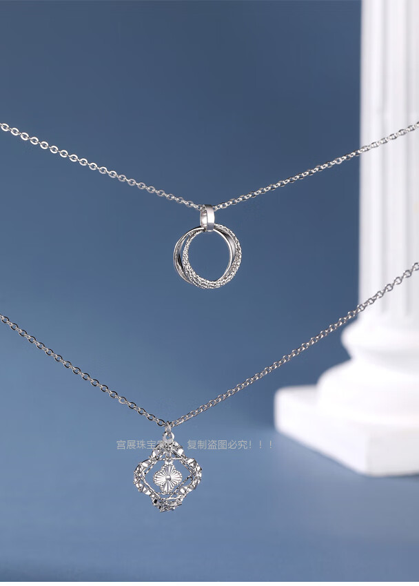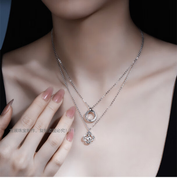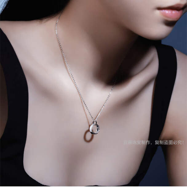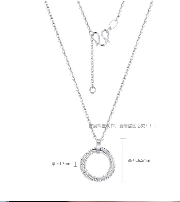 Gongzhan Geometric Ring Platinum Necklace for Women, Simple and Versatile pt950 Platinum Chain Set Authentic Birthday Gift for Girlfriend Geometric Ring Necklace Platinum pt950 Approximately 5-5.2 Grams
