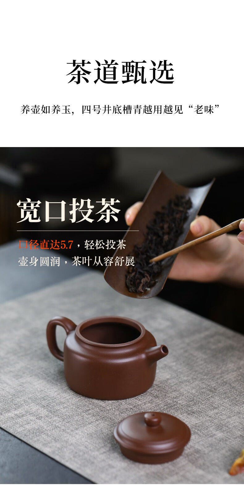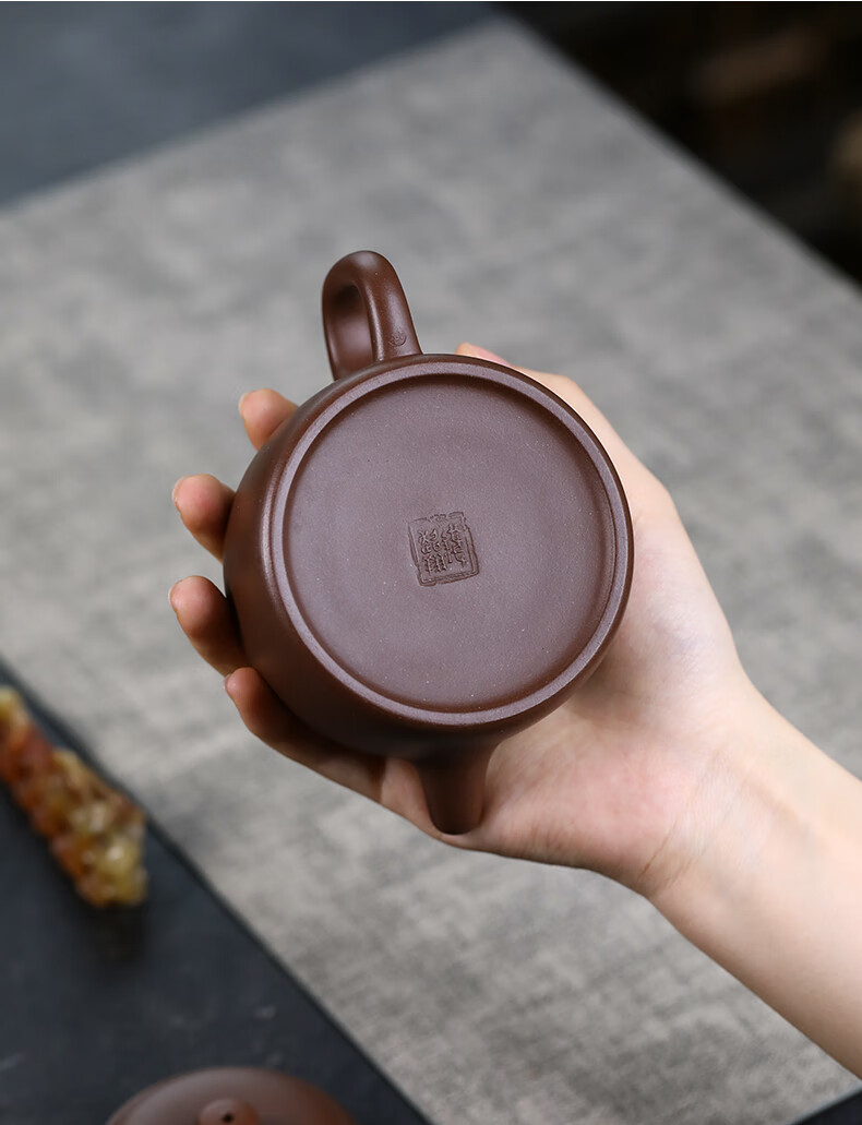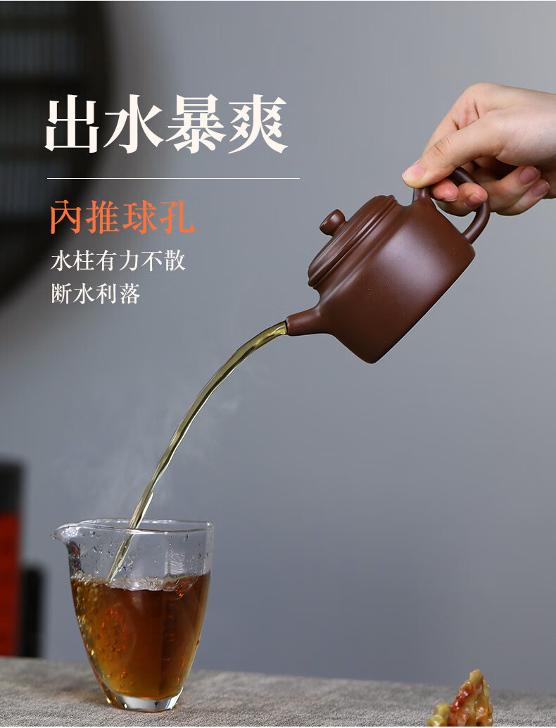 Zilaishun Yixing authentic purple clay teapot purple sand teapot bottom trough Qingde bell teapot high-end Kung Fu tea set as a gift for the elders bottom trough Qingde bell kettle 220ml