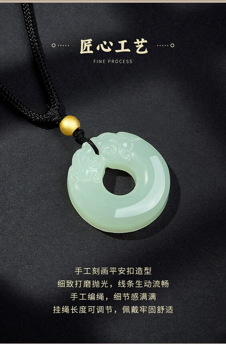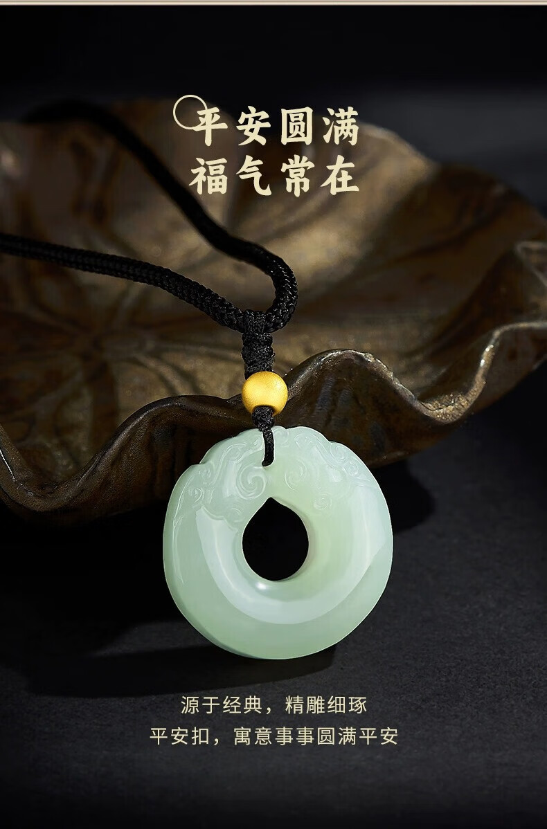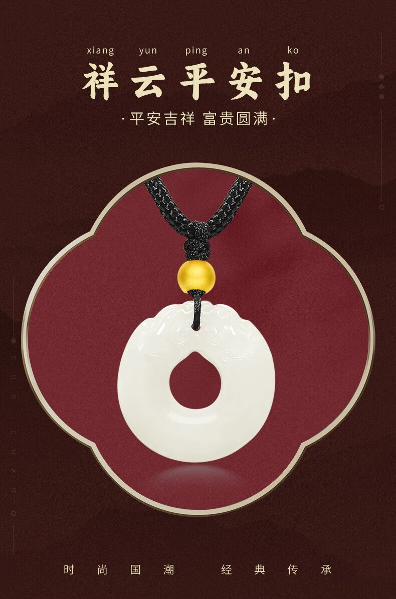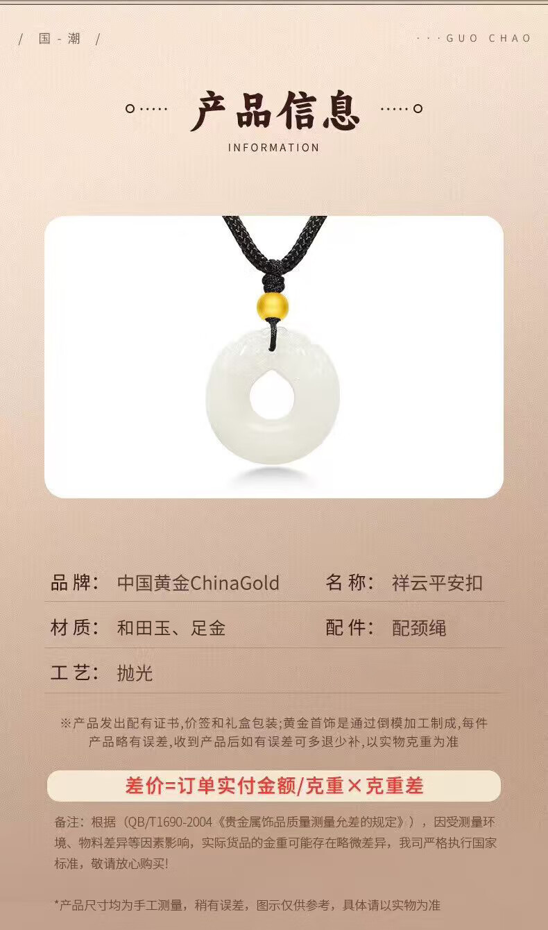 China Gold (CHINA GOLD) Hetian Jade Ping An Buckle Pendant for Men and Women, Ping An Wu Shi Brand Necklace, Jade Love Birthday Gift, Year of the Horse, Ben Ming Year Gift, Type E* Ping An Wu Shi Brand Pendant + Gold Beads 0.12g, Medium Gold Gift Box