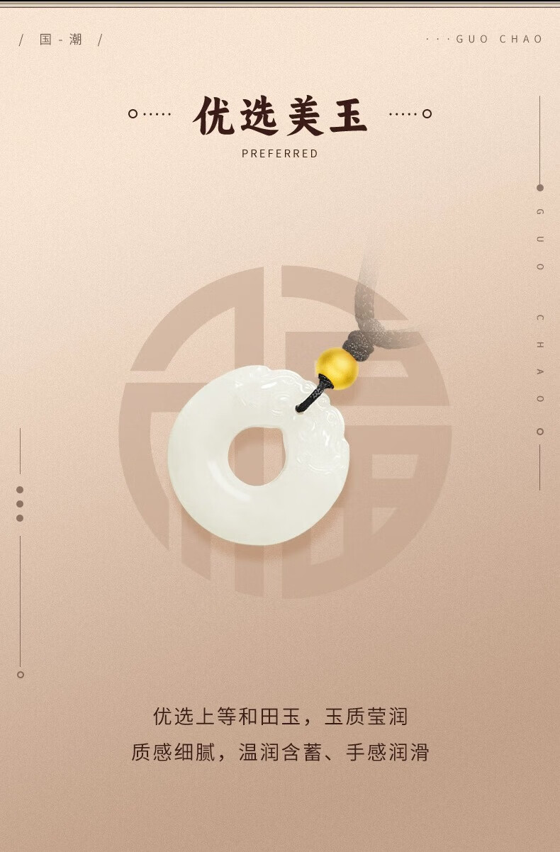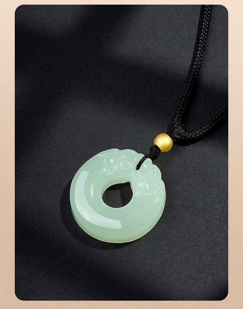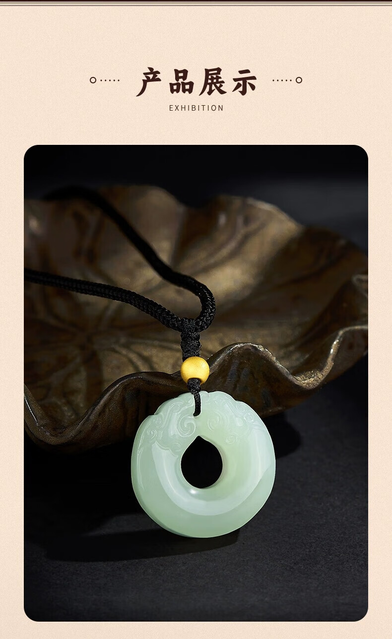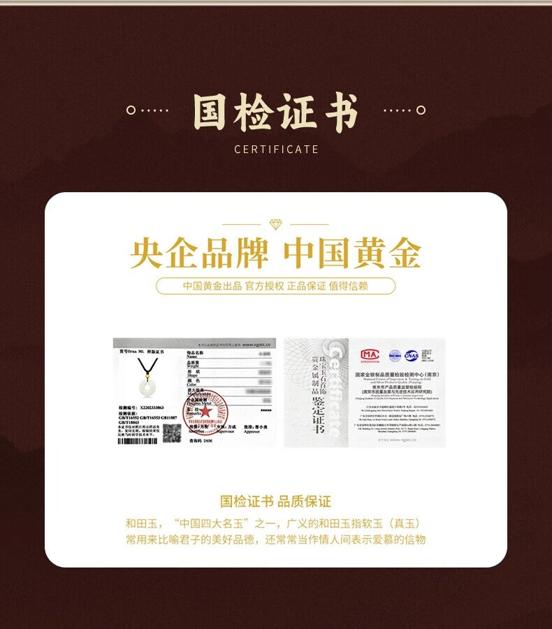 China Gold (CHINA GOLD) Hetian Jade Ping An Buckle Pendant for Men and Women, Ping An Wu Shi Brand Necklace, Jade Love Birthday Gift, Year of the Horse, Ben Ming Year Gift, Type E* Ping An Wu Shi Brand Pendant + Gold Beads 0.12g, Medium Gold Gift Box