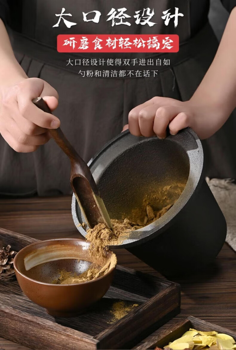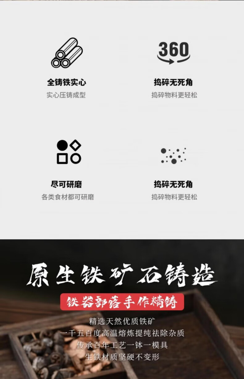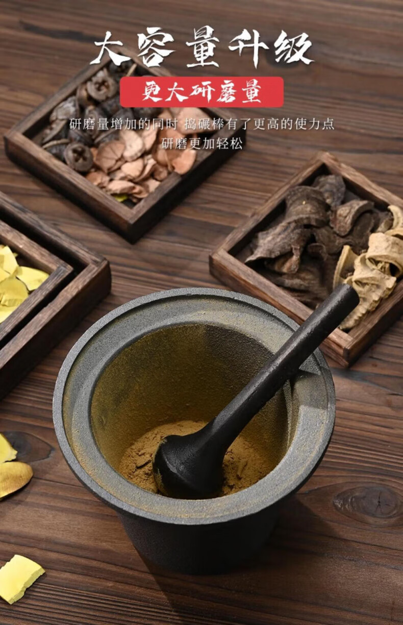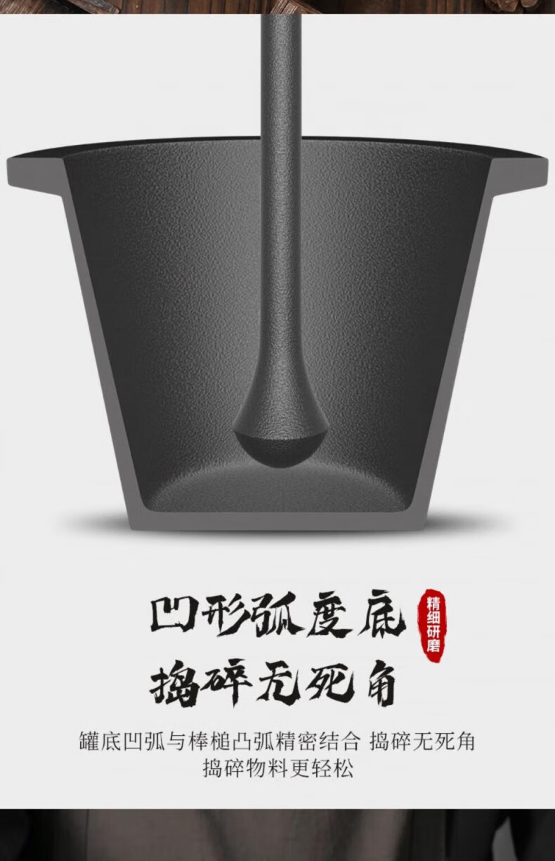 Man Gong high-end quality household cast iron pestle iron tamping medicine jar masher Chinese medicine tamping iron pestle mortar pestle medicine jar vegetable oil small size oil brush + leather cover