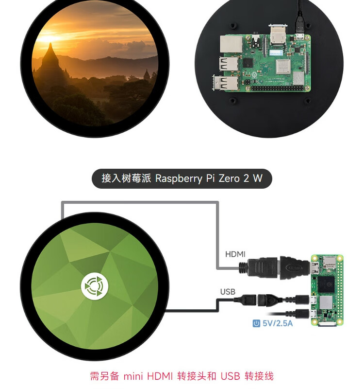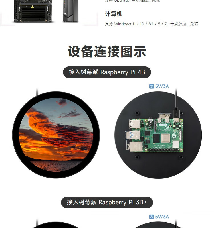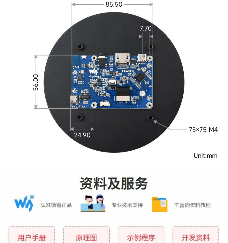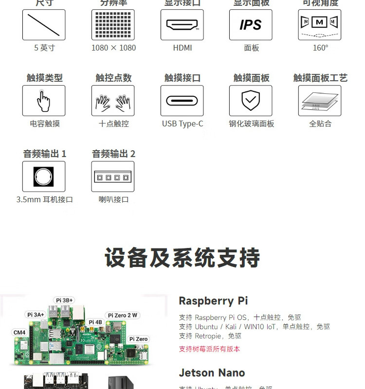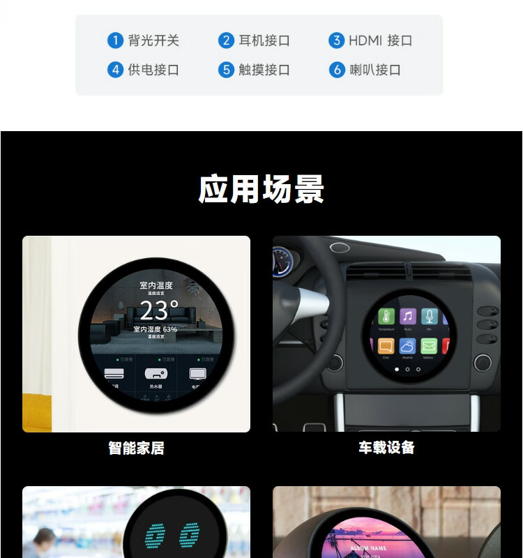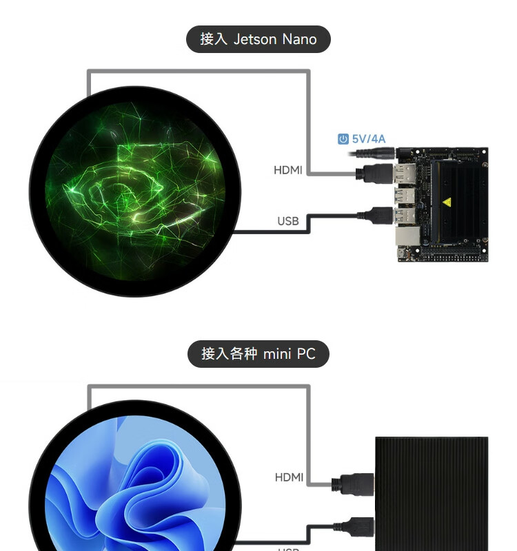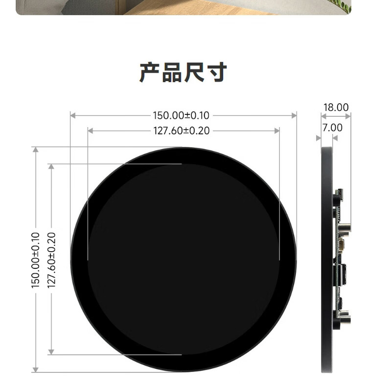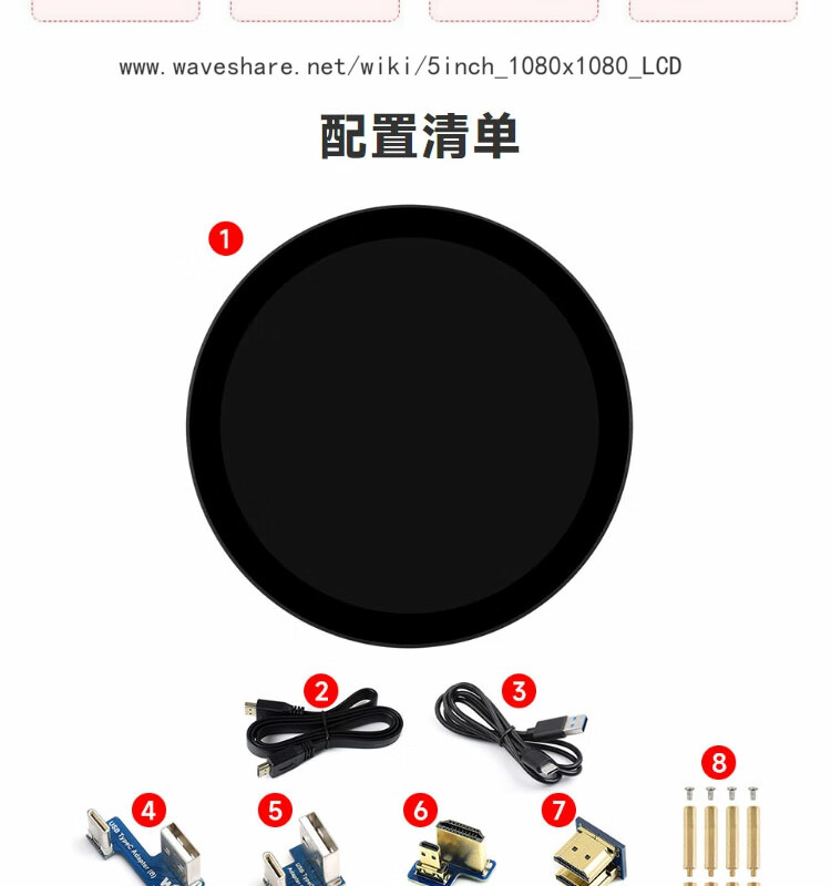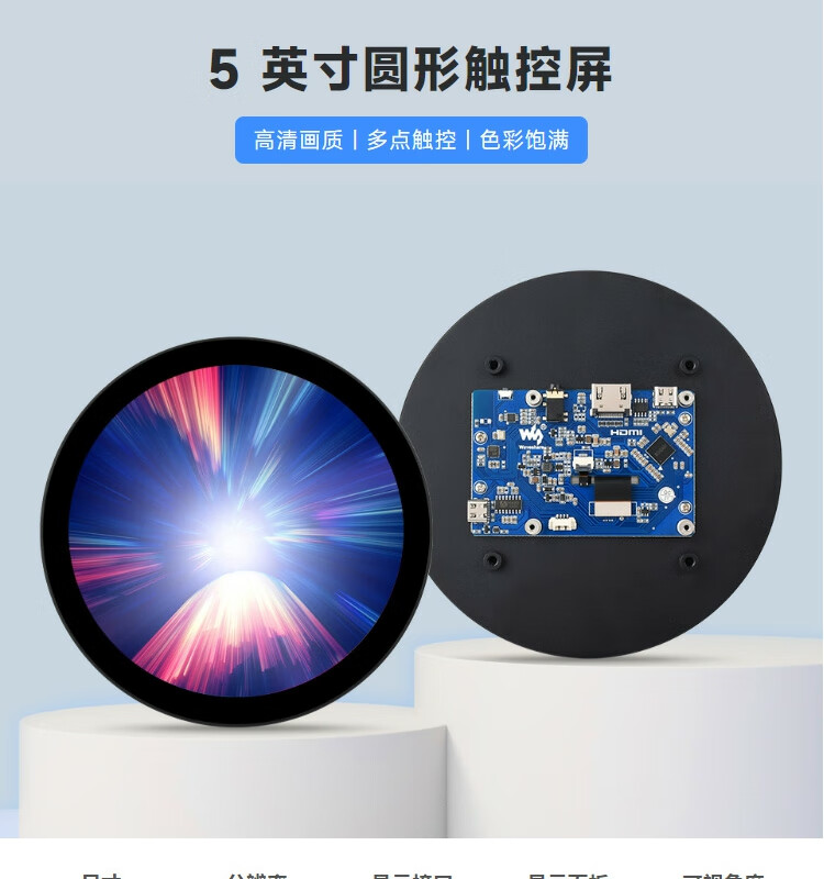 WeiXue Raspberry Pi 5/NVIDIA 5-inch round capacitive touch screen HDMI high-definition display smart home 1080x1080 resolution 5-inch HDMI round touch screen