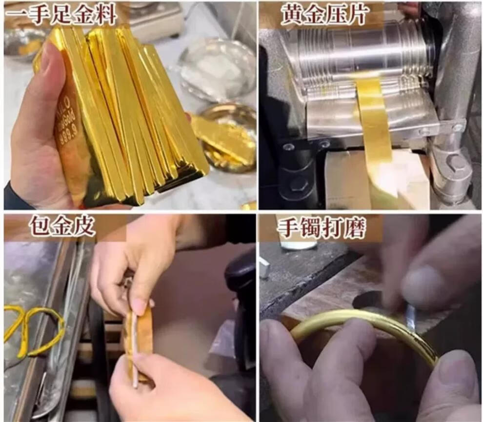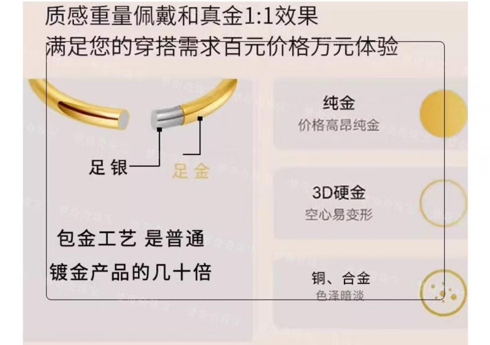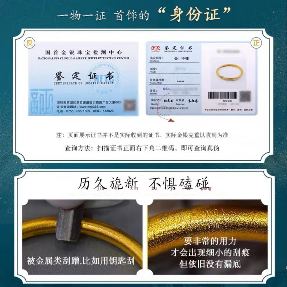 Dewey Van pure gold silver-covered bracelet, ancient gold bracelet, simulated heritage 24K gold ring wedding gift, 999 solid jewelry, bamboo bracelet (elastic rope) (real gold covered with silver)