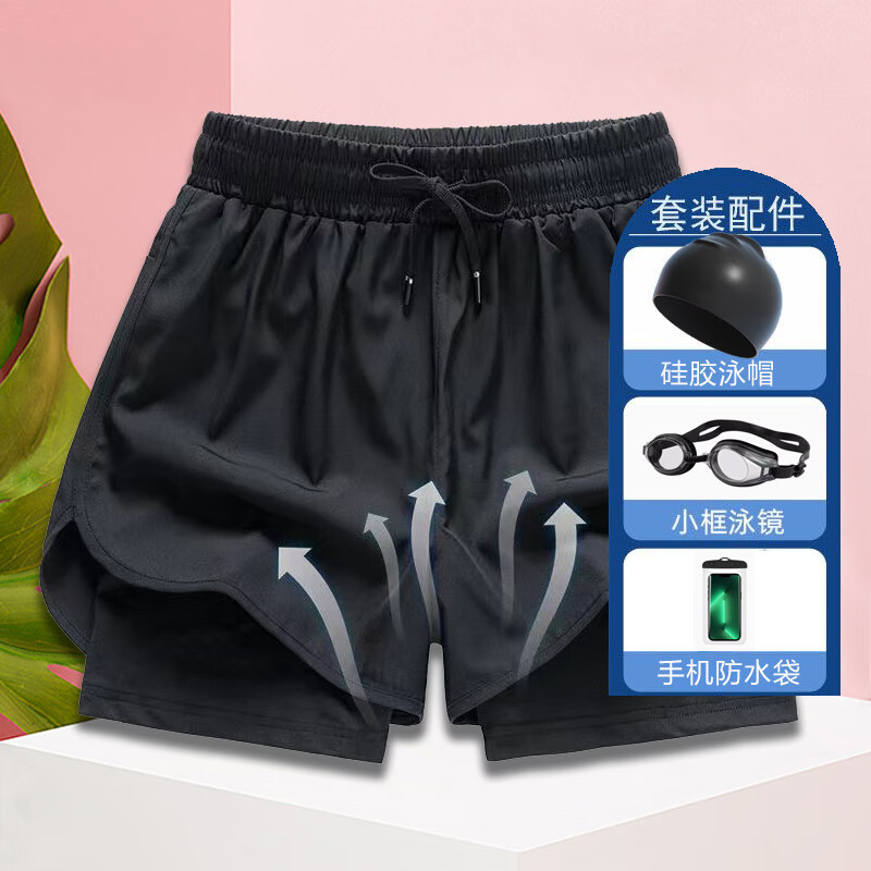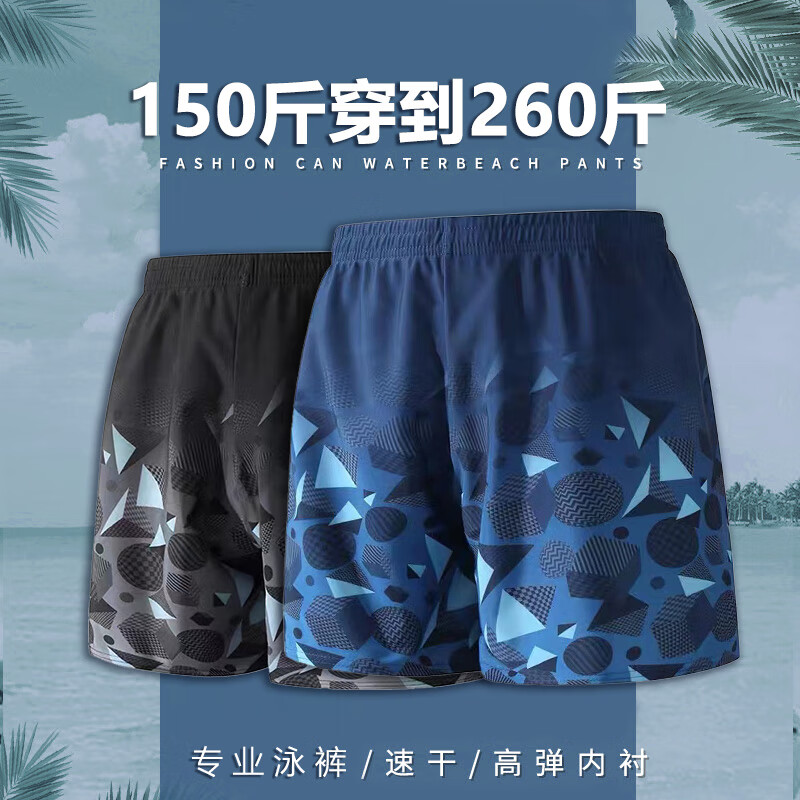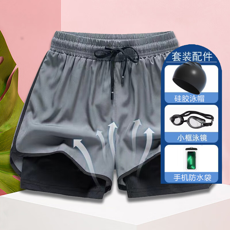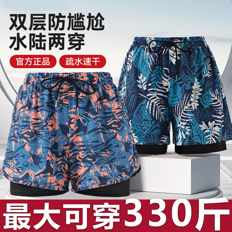 何佳功大码男士泳裤加肥加大300斤泳裤防尴尬速干宽松沙滩裤新款 双层黄色色泳裤(送防水袋) 2XL 建议150-165斤