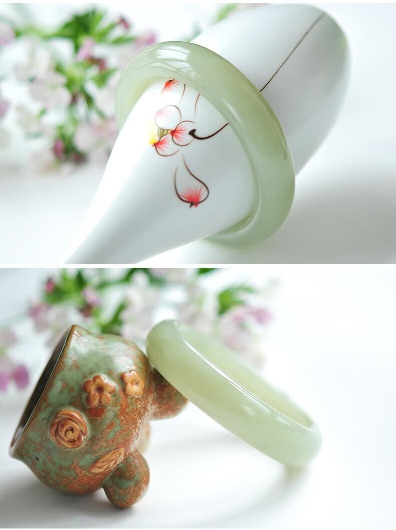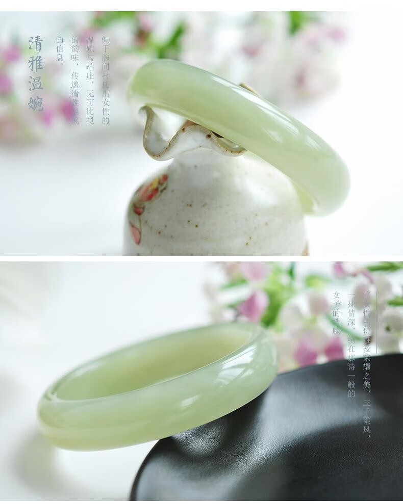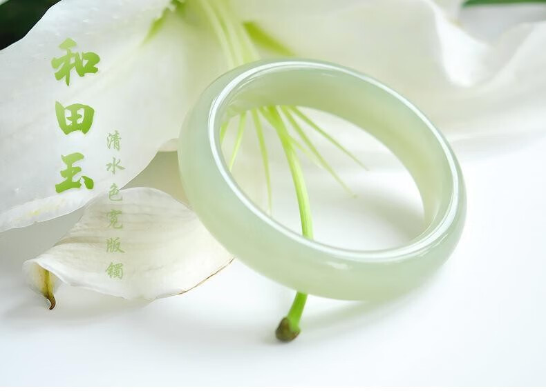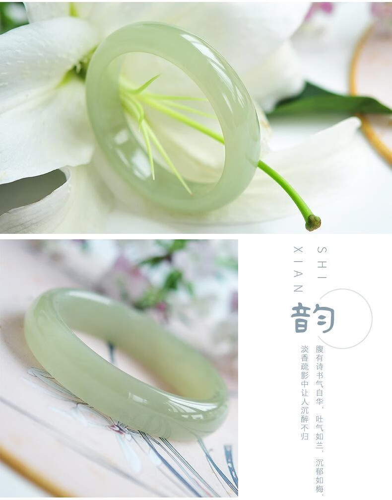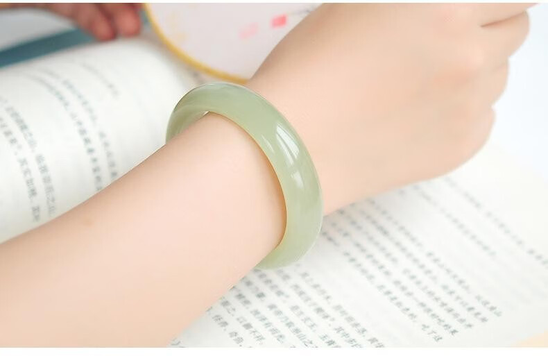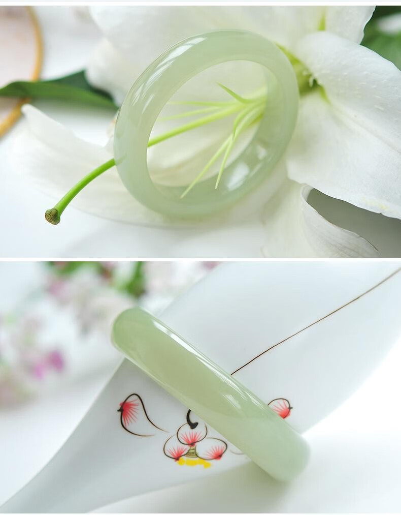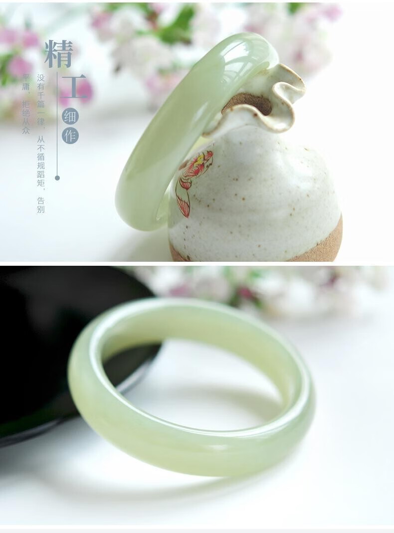Saturday blessing Hetian jade green and white jade bracelet for women clear water color green jade bracelet suitable for 1 carat inner diameter 53MM